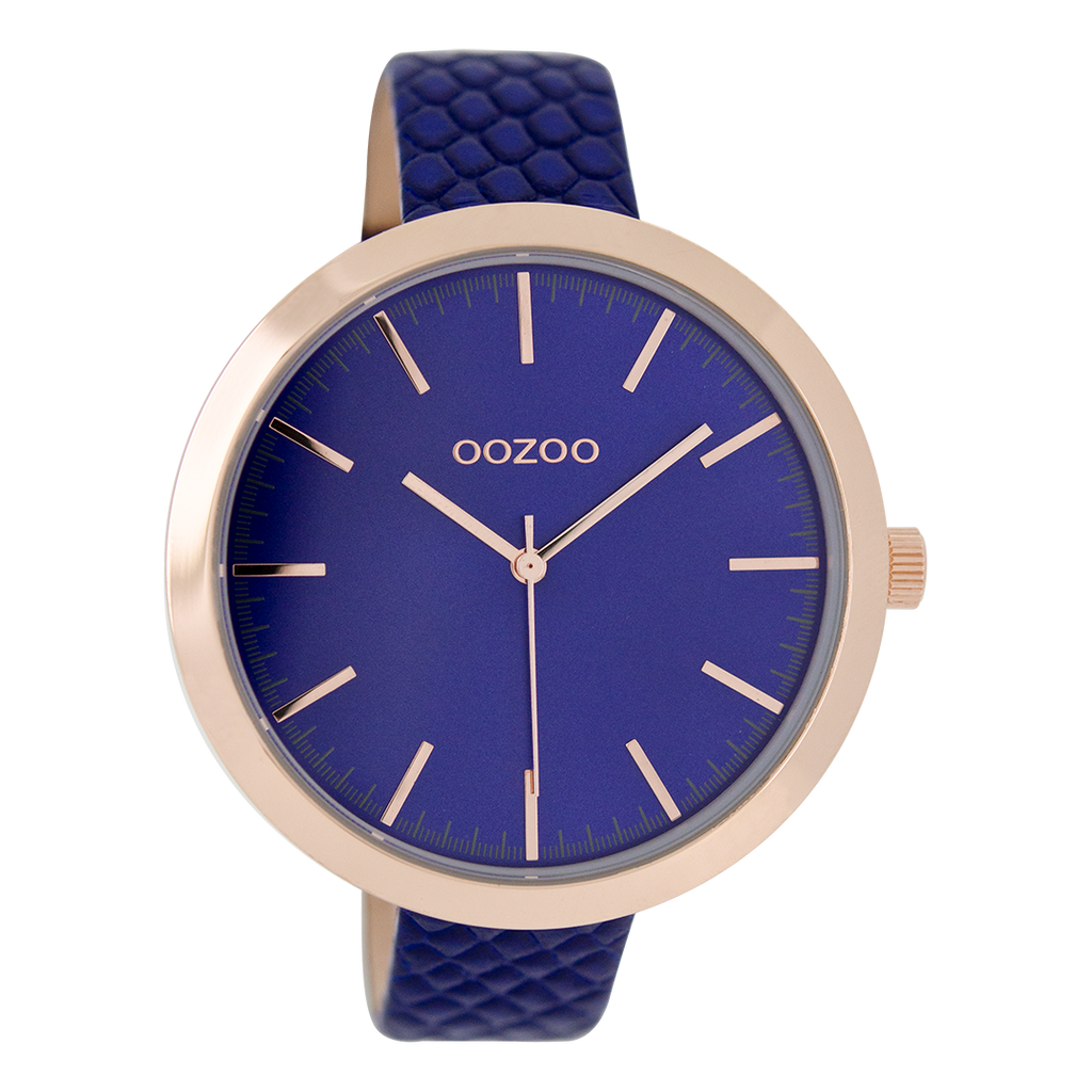 Rose gold coloured OOZOO watch with dark blue leather strap - C20203