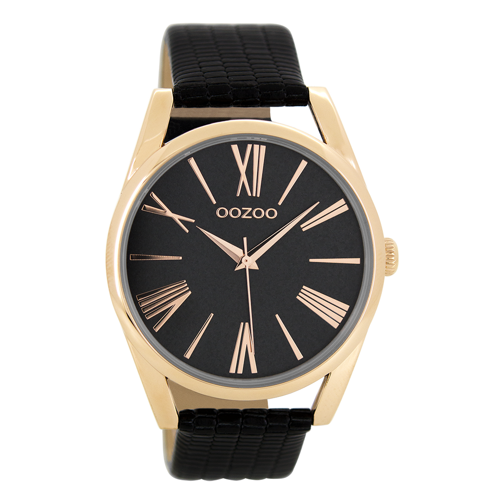 Rose gold coloured OOZOO watch with black leather strap - C9734