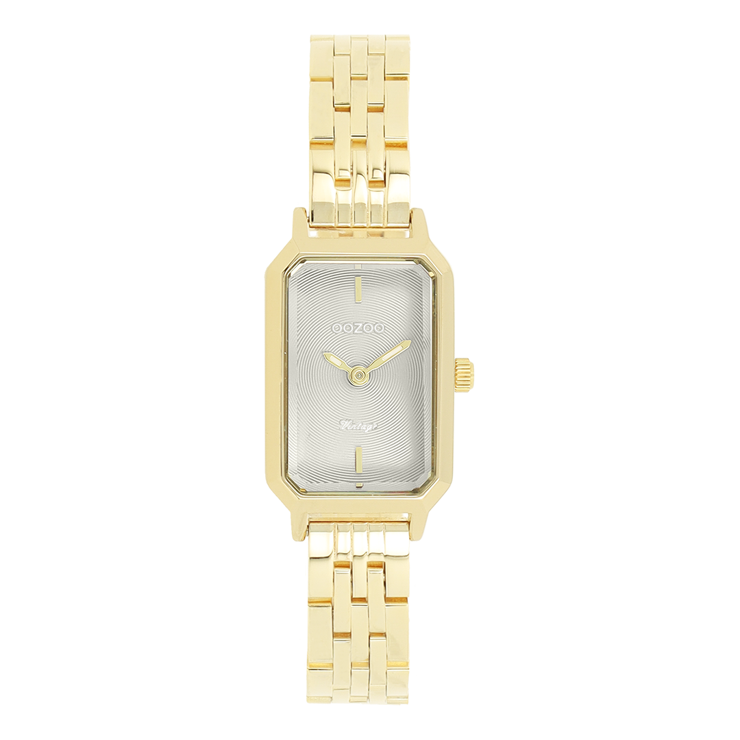 The classic look stays key in this trendy series and therefore, this rectangular OOZOO vintage design with a playful wink is the season must-have! This ladies watch is the perfect combination of fashion and comfort with its 22x19 mm gold coloured metal watch case and light grey circle pattern dial. The gold coloured stainless steel bracelet makes this watch a trendy accessory, which you can wear every day. The dial has gold coloured stripes digits and matching hands. The C20457 adds the sparkle to your outfit. The mineral glass lays in a 9,5 mm slim metal watch case with IP-plating. This design has a stainless steel backplate and is nickel safe. This watch has a 2ATM Japanese movement and is covered by a 2 year warranty (see section 3 of our Refund, shipping & warranty policy).