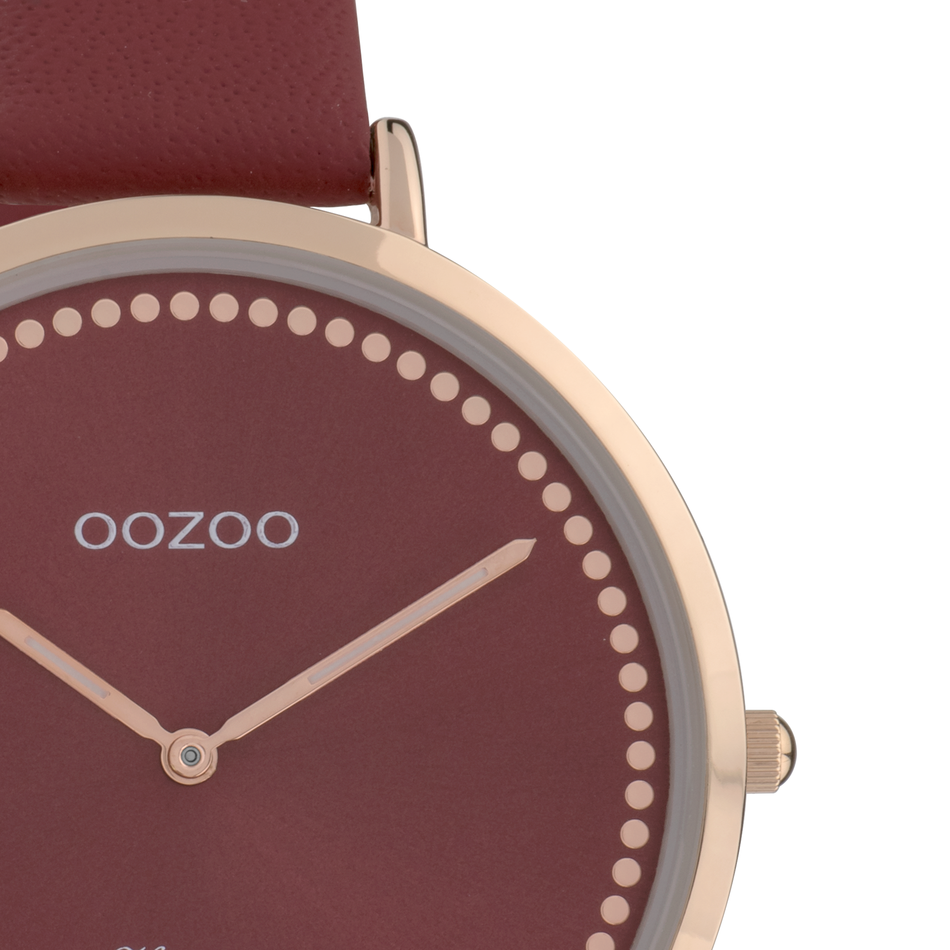 Rose gold coloured OOZOO watch with burgundy leather strap - C9851