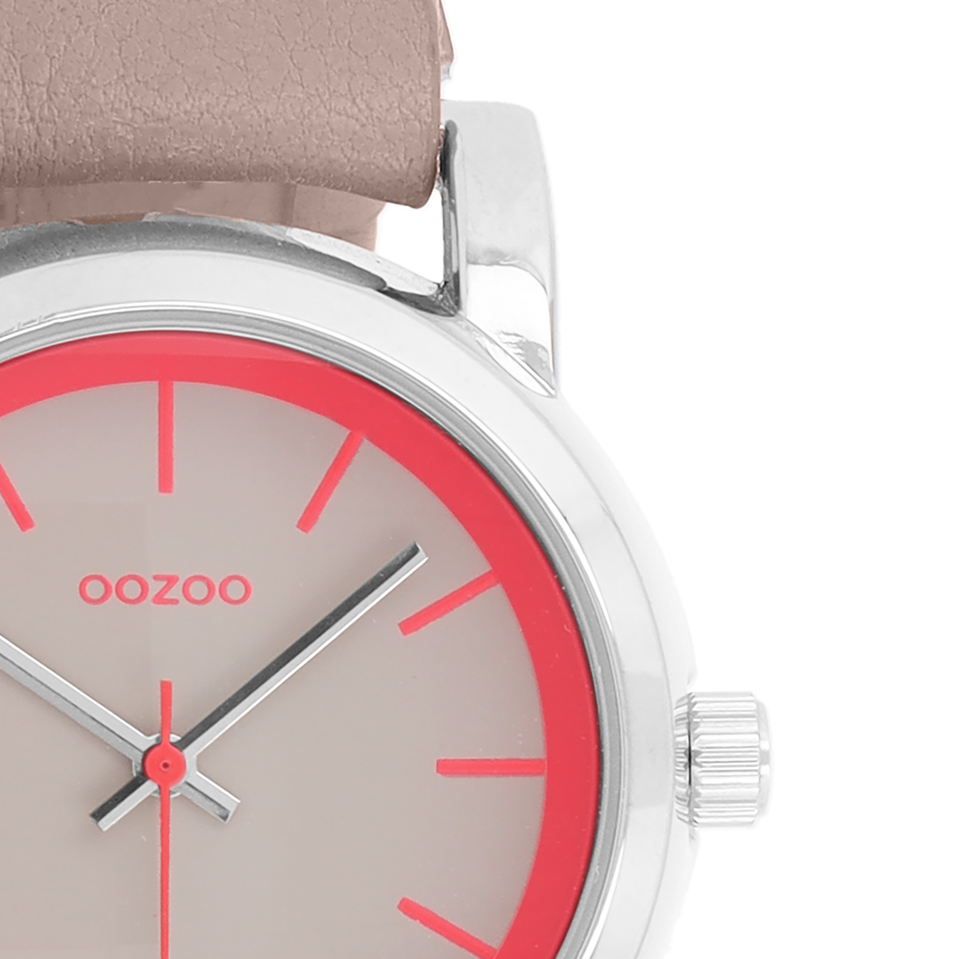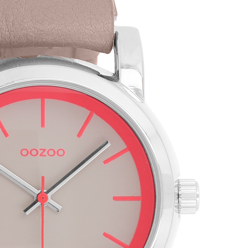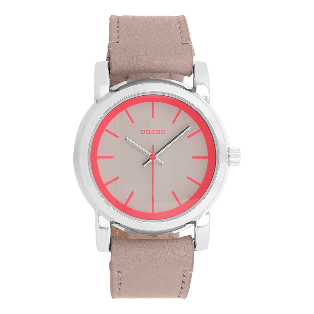 Silver coloured OOZOO watch with pink grey leather strap - C7183