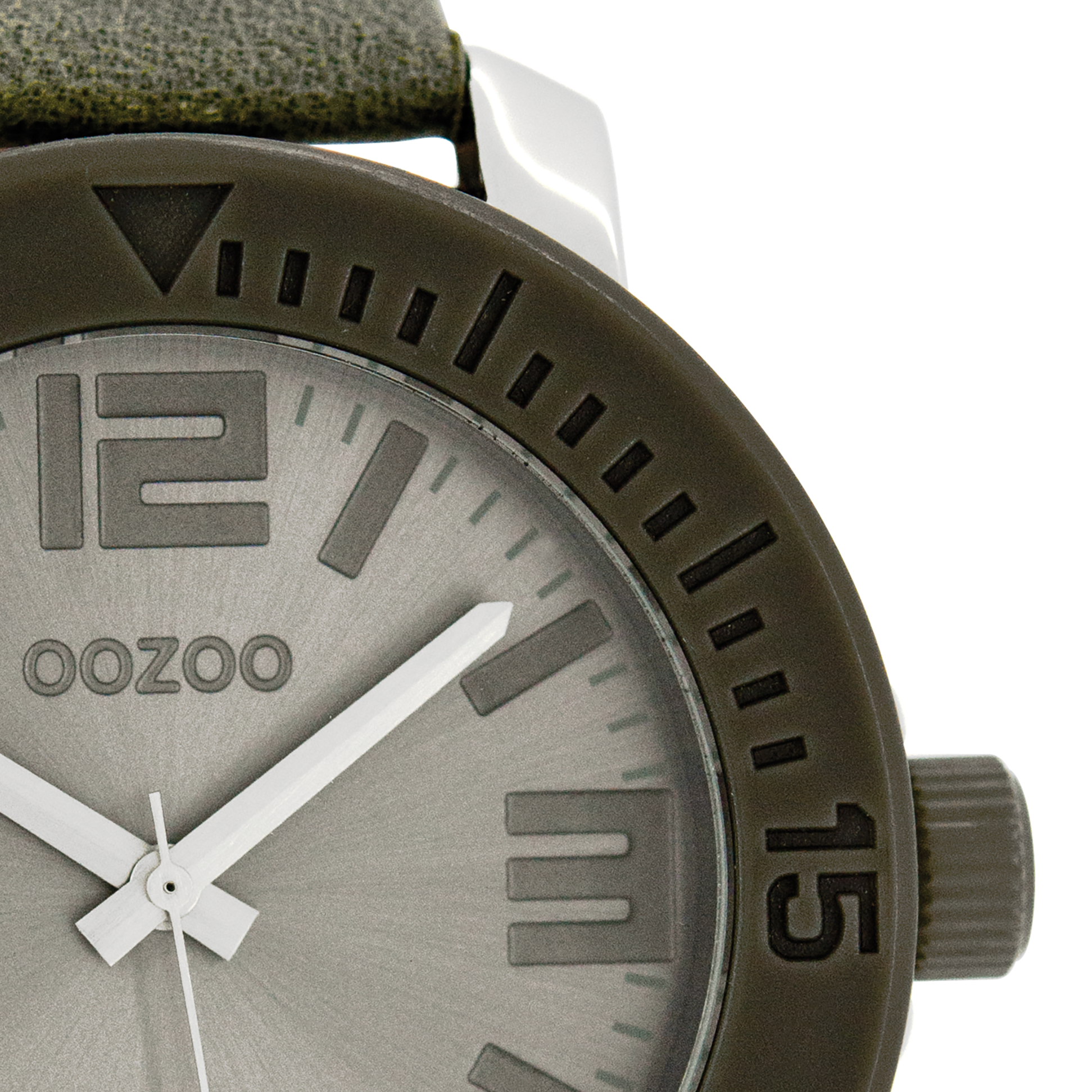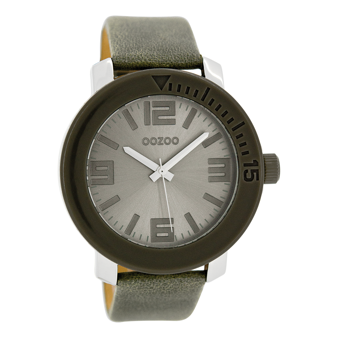 Silver coloured OOZOO watch with grey leather strap - C6263