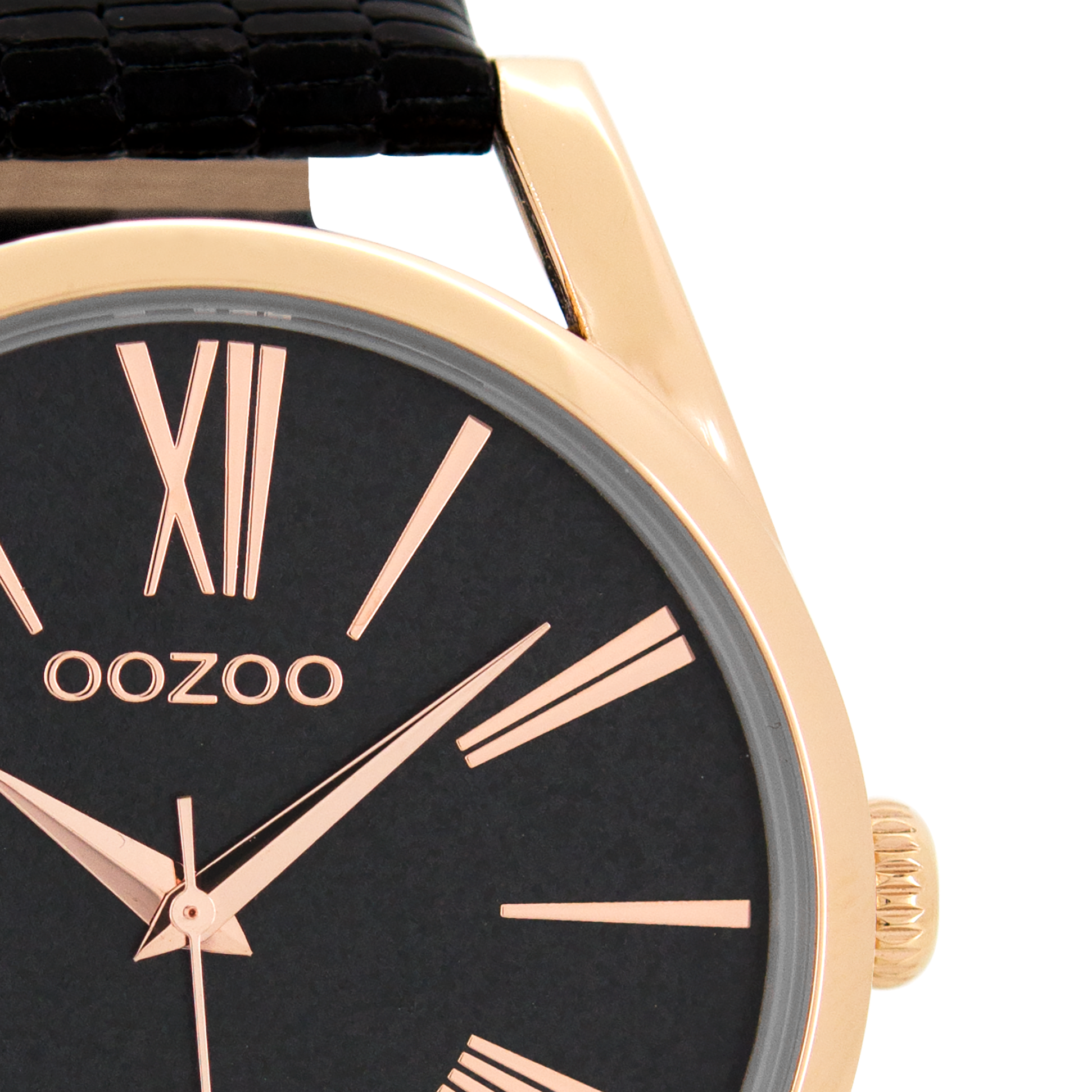 Stand out with this beautiful round ladies design from the trendy OOZOO Timepieces collection. The C8609 has a black metal mesh bracelet and 42 mm rose gold coloured metal watch case. You are making quite the fashion statement with this black dial, rose gold coloured stripes and roman numerals digits and matching hands. This essential watch for your wardrobe has a mineral glass, stainless steel backplate and is nickel safe. This watch has a 2 Japanese movement and is covered by a 2 year warranty (see section 3 of our Refund, shipping & warranty policy).