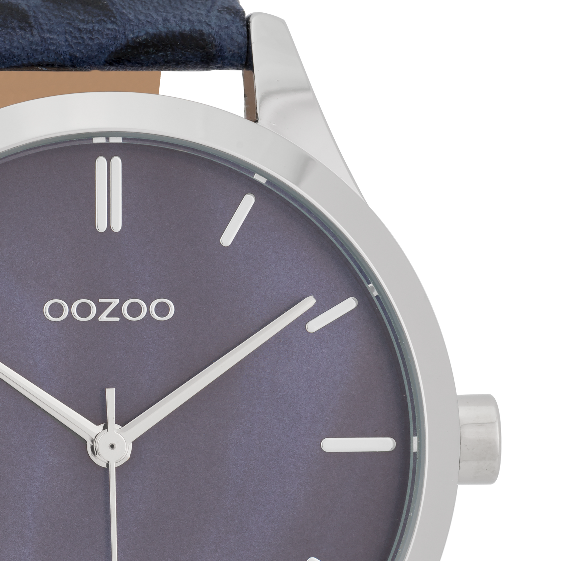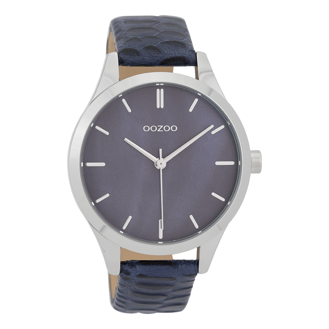 Silver coloured OOZOO watch with dark blue leather strap - C9721