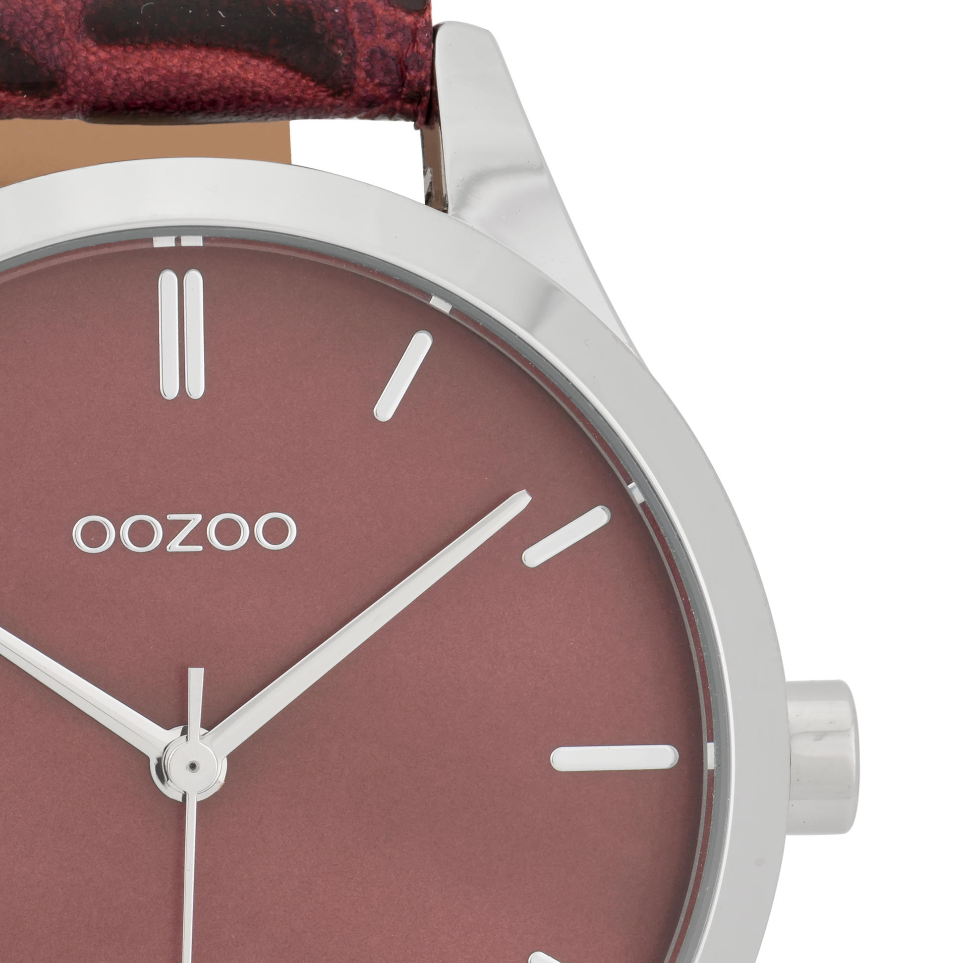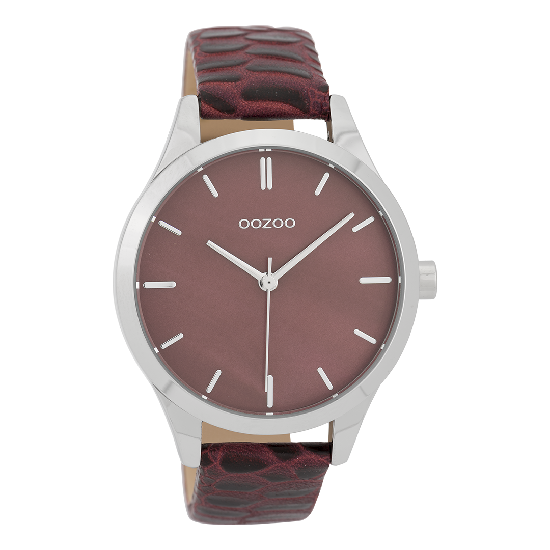 Silver coloured OOZOO watch with burgundy leather strap - C9722