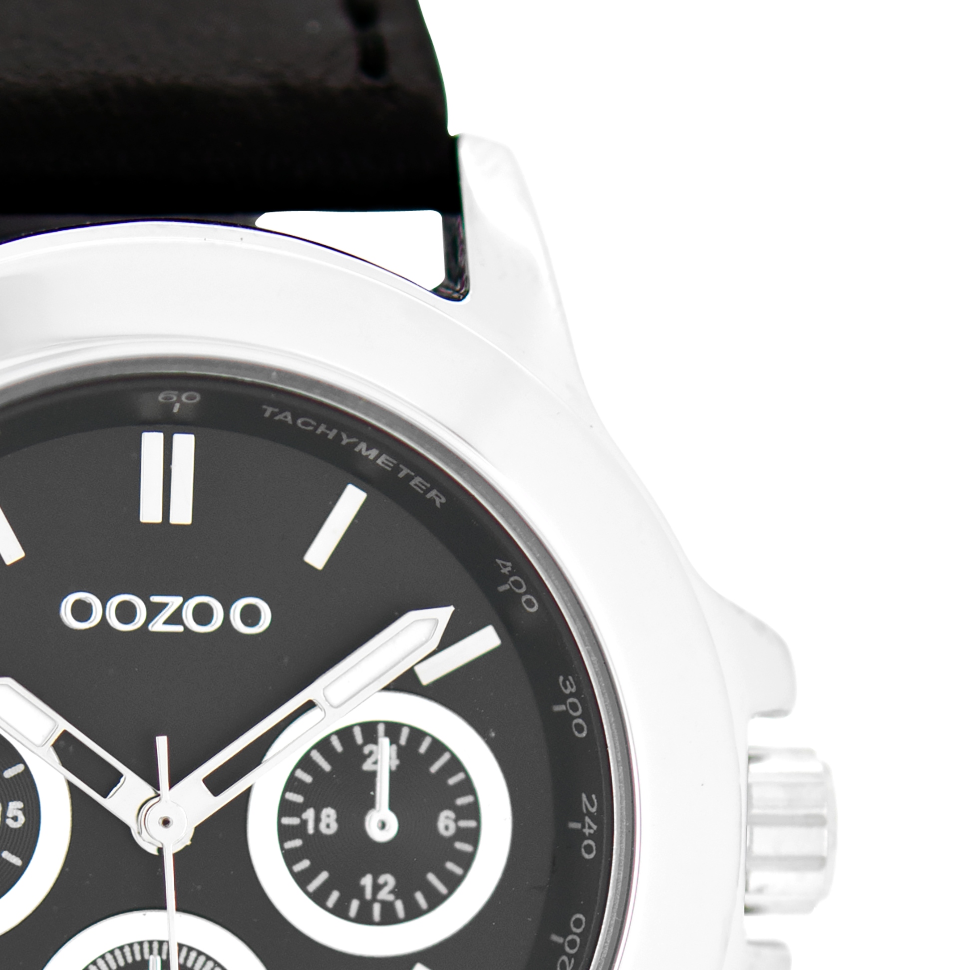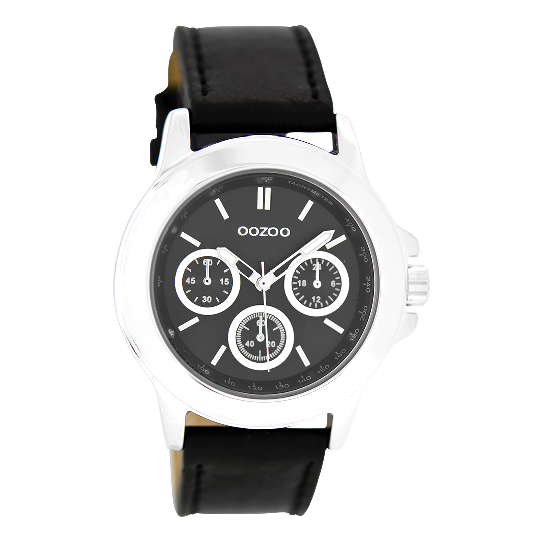 Silver coloured OOZOO watch with black leather strap - C6189