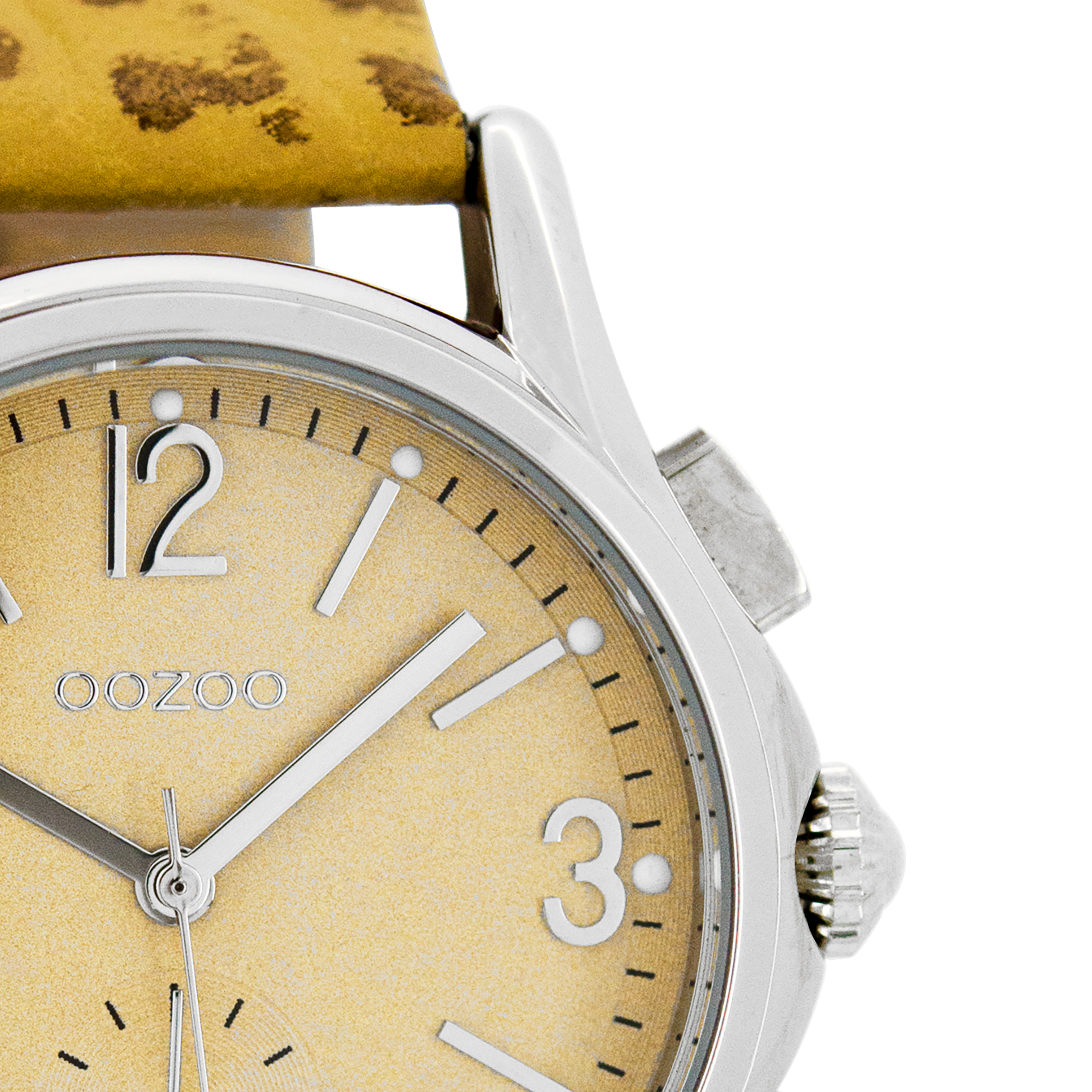 Silver coloured OOZOO watch with camel leather strap - C7225