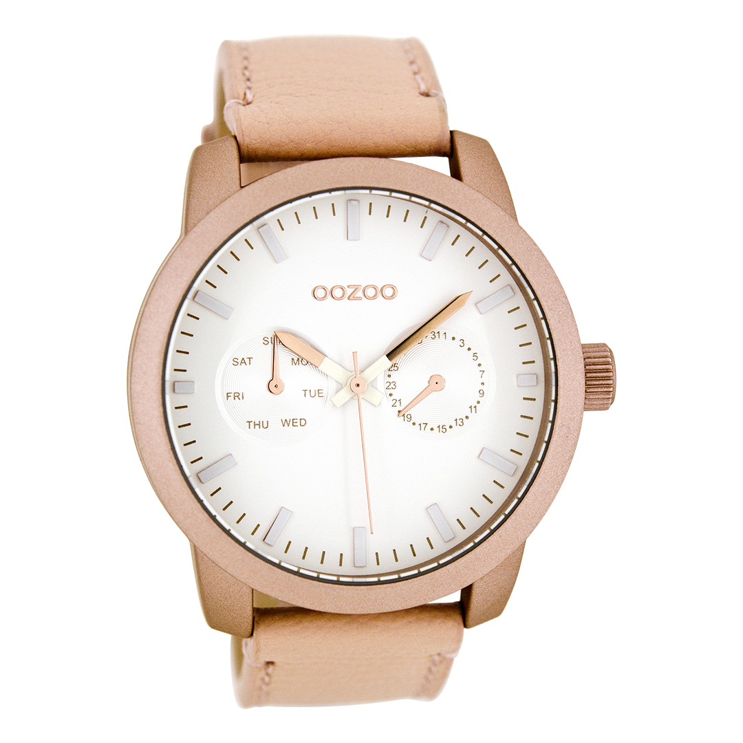 Stand out with this beautiful round unisex design from the trendy OOZOO Timepieces collection. The C8256 has a powder pink leather strap and 46 mm powder pink matte watch case. You are making quite the fashion statement with this powder pink chrono dial, silver coloured stripes digits and powder pink hands. This essential watch for your wardrobe has a mineral glass, stainless steel backplate and is nickel safe. This watch has a 2 Japanese movement and is covered by a 2 year warranty (see section 3 of our Refund, shipping & warranty policy).
