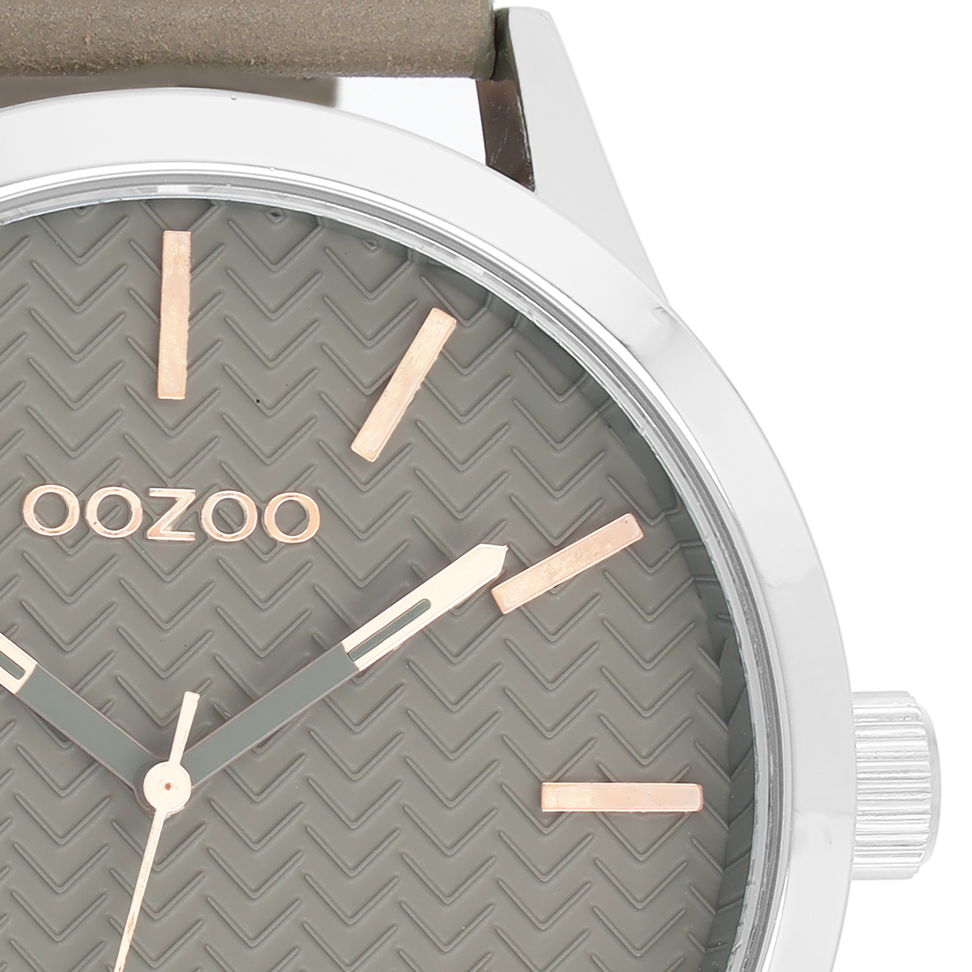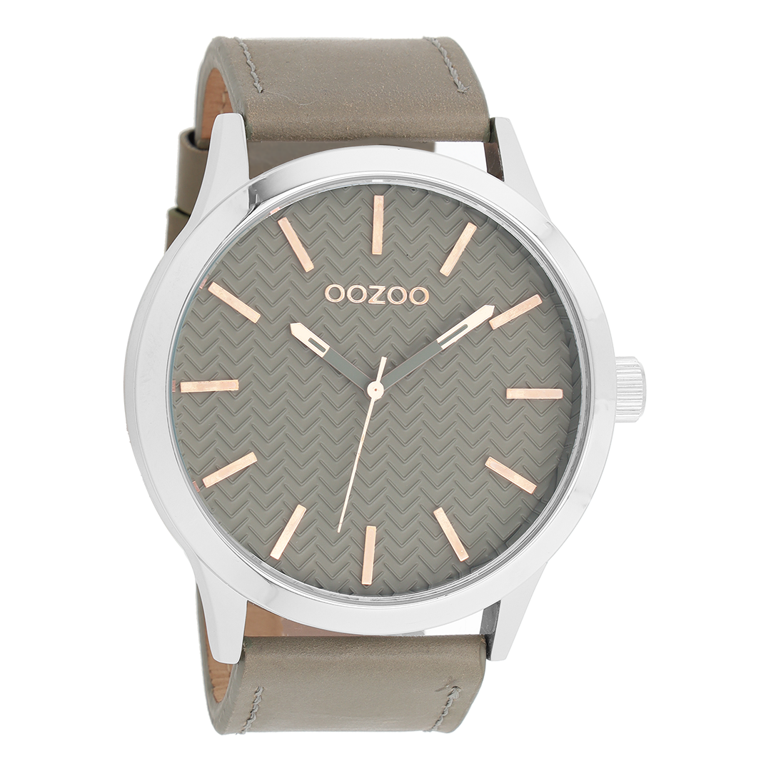 Silver coloured OOZOO watch with stone grey leather strap - C9010
