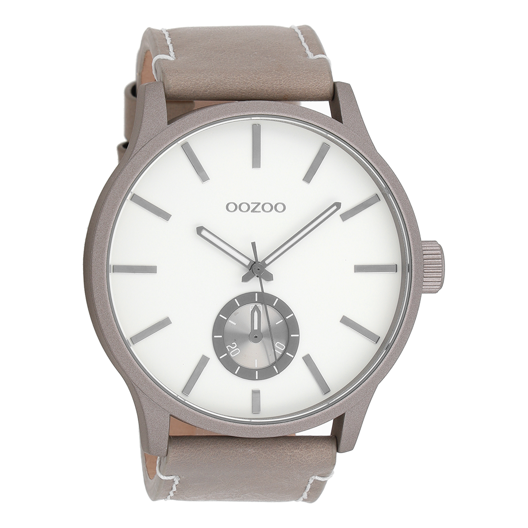 Stand out with this beautiful round gents design from the trendy OOZOO Timepieces collection. The C9035 has a taupe leather strap and 50 mm taupe matte watch case. You are making quite the fashion statement with this white chrono dial, taupe stripes digits and matching hands. This essential watch for your wardrobe has a mineral glass, stainless steel backplate and is nickel safe. This watch has a 2 Japanese movement and is covered by a 2 year warranty (see section 3 of our Refund, shipping & warranty policy).