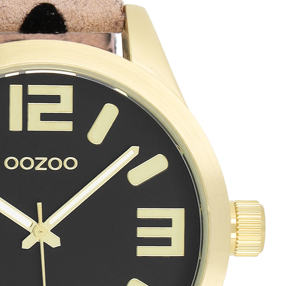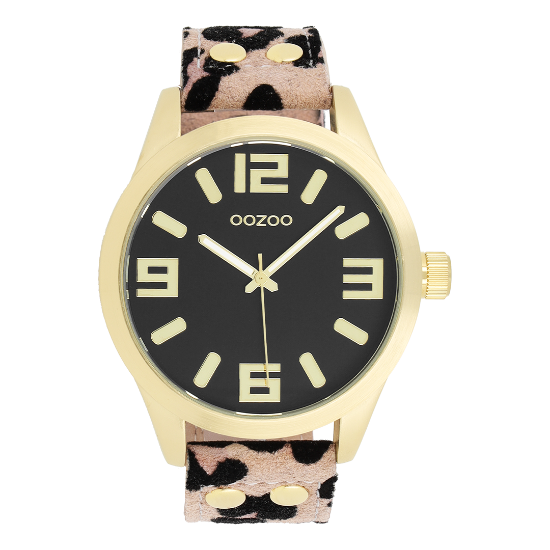 Stand out with this beautiful round ladies design from the trendy OOZOO Timepieces collection. The C1098 has a leopard print brown leather strap and 46 mm gold coloured metal watch case. You are making quite the fashion statement with this black dial, gold coloured stripes and numbers digits and matching hands. This essential watch for your wardrobe has a mineral glass, stainless steel backplate and is nickel safe. This watch has a 2ATM Japanese movement and is covered by a 2 year warranty (see section 3 of our Refund, shipping & warranty policy).