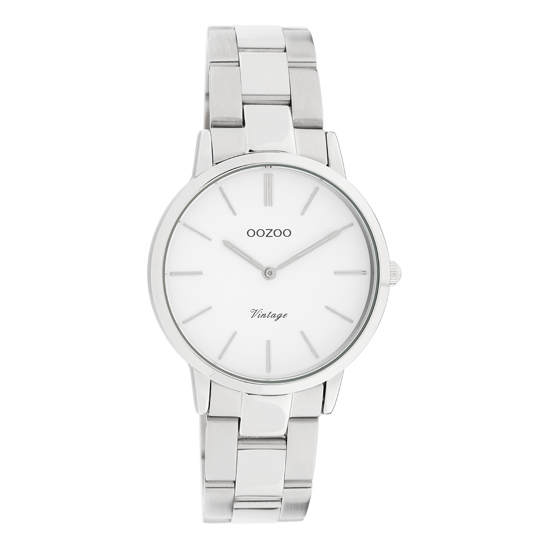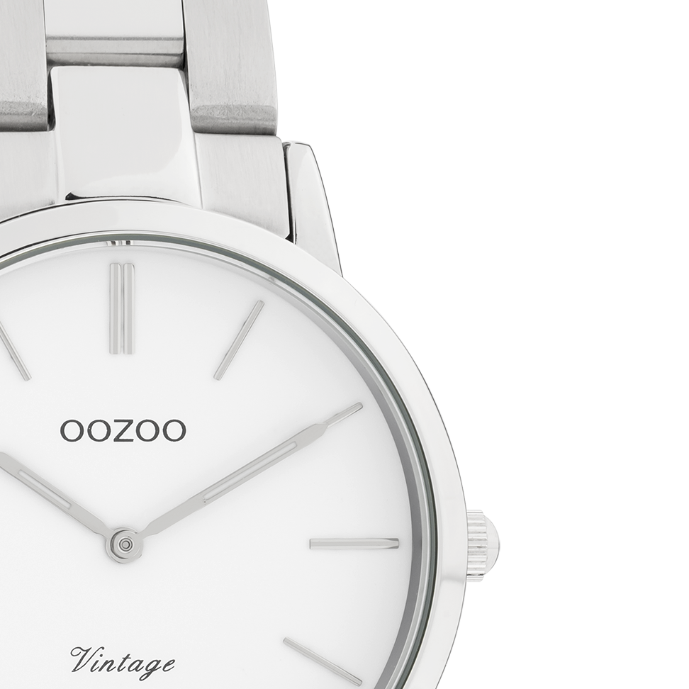 Sophistication and elegance are two elements of our beautiful OOZOO Vintage Classics. This classic round design with a contemporary twist is something for everyone. This unisex watch is the perfect combination of comfort and fashion with its 34 mm silver coloured metal watch case and white dial. The matte/shiny silver coloured stainless steel bracelet makes this watch an all-time classic which you can wear with every occasion. The dial has silver coloured stripes digits and matching hands. The C20038 is a must have for your every-wear. The mineral glass lays in a 6,9 mm slim metal watch case with IP-plating. This design has a stainless steel backplate and is nickel safe. This watch has a 2 Japanese movement and is covered by a 2 year warranty (see section 3 of our Refund, shipping & warranty policy).
