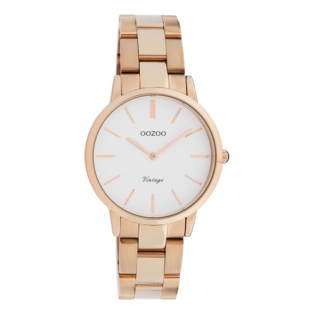 Sophistication and elegance are two elements of our beautiful OOZOO Vintage Classics. This classic round design with a contemporary twist is something for everyone. This unisex watch is the perfect combination of comfort and fashion with its 34 mm rose gold coloured metal watch case and white dial. The matte/shiny rose gold coloured stainless steel bracelet makes this watch an all-time classic which you can wear with every occasion. The dial has rose gold coloured stripes digits and matching hands. The C20048 is a must have for your every-wear. The mineral glass lays in a 6,9 mm slim metal watch case with IP-plating. This design has a stainless steel backplate and is nickel safe. This watch has a 2 Japanese movement and is covered by a 2 year warranty (see section 3 of our Refund, shipping & warranty policy).
