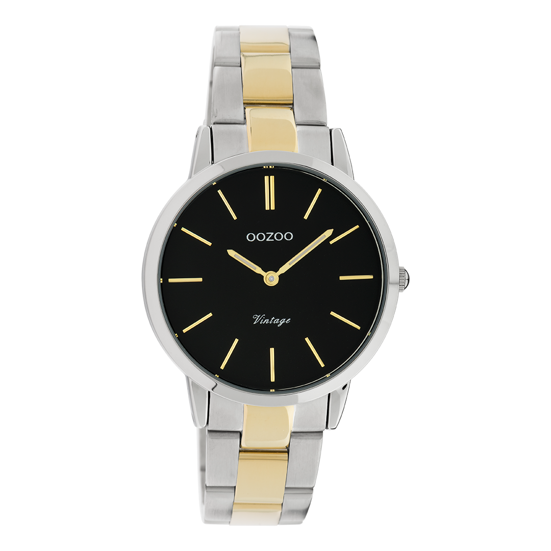Sophistication and elegance are two elements of our beautiful OOZOO Vintage Classics. This classic round design with a contemporary twist is something for everyone. This unisex watch is the perfect combination of comfort and fashion with its 34 mm silver/gold coloured metal watch case and black dial. The matte/shiny silver/gold coloured stainless steel bracelet makes this watch an all-time classic which you can wear with every occasion. The dial has gold coloured stripes digits and matching hands. The C20107 is a must have for your every-wear. The mineral glass lays in a 6,9 mm slim metal watch case with IP-plating. This design has a stainless steel backplate and is nickel safe. This watch has a 2 Japanese movement and is covered by a 2 year warranty (see section 3 of our Refund, shipping & warranty policy).