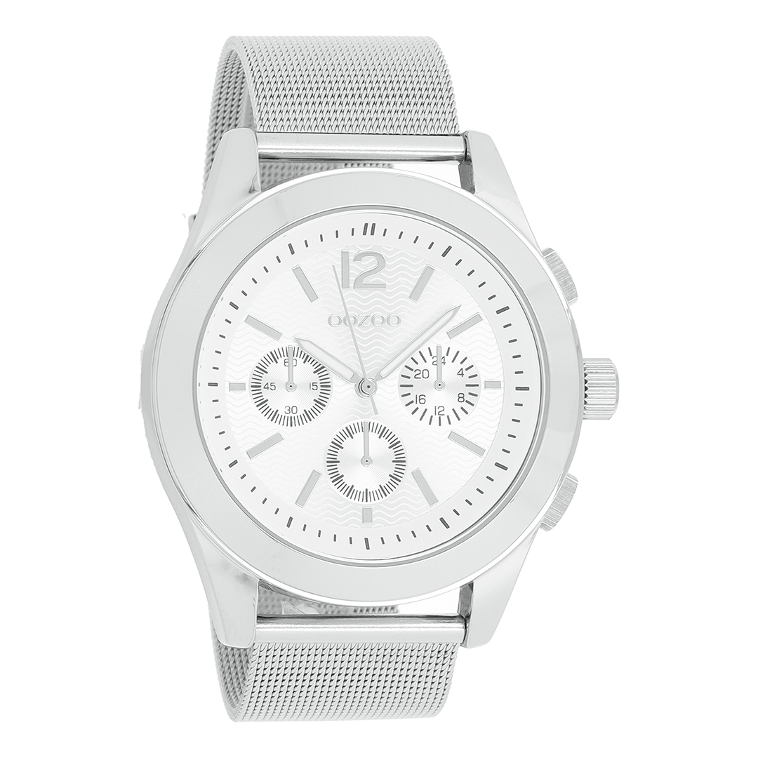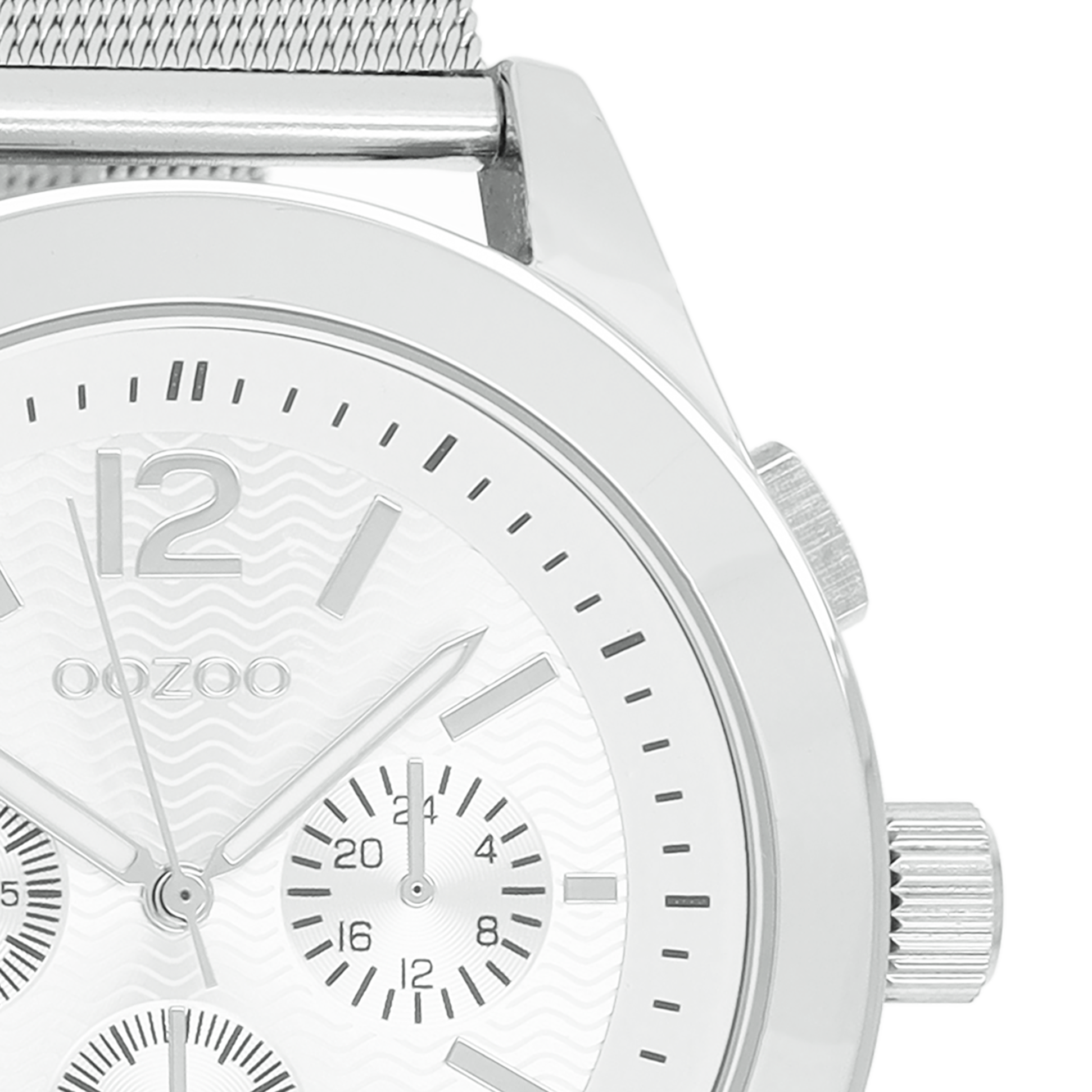 Silver coloured OOZOO watch with metal mesh bracelet - C2355