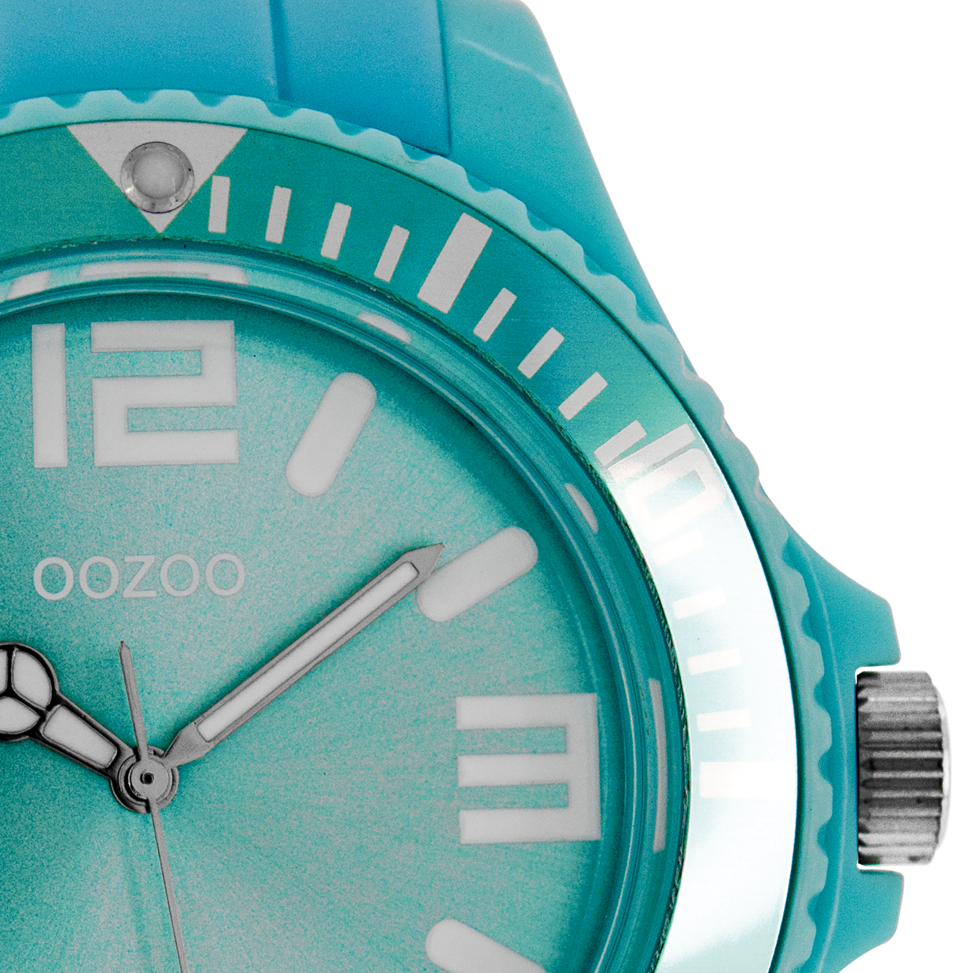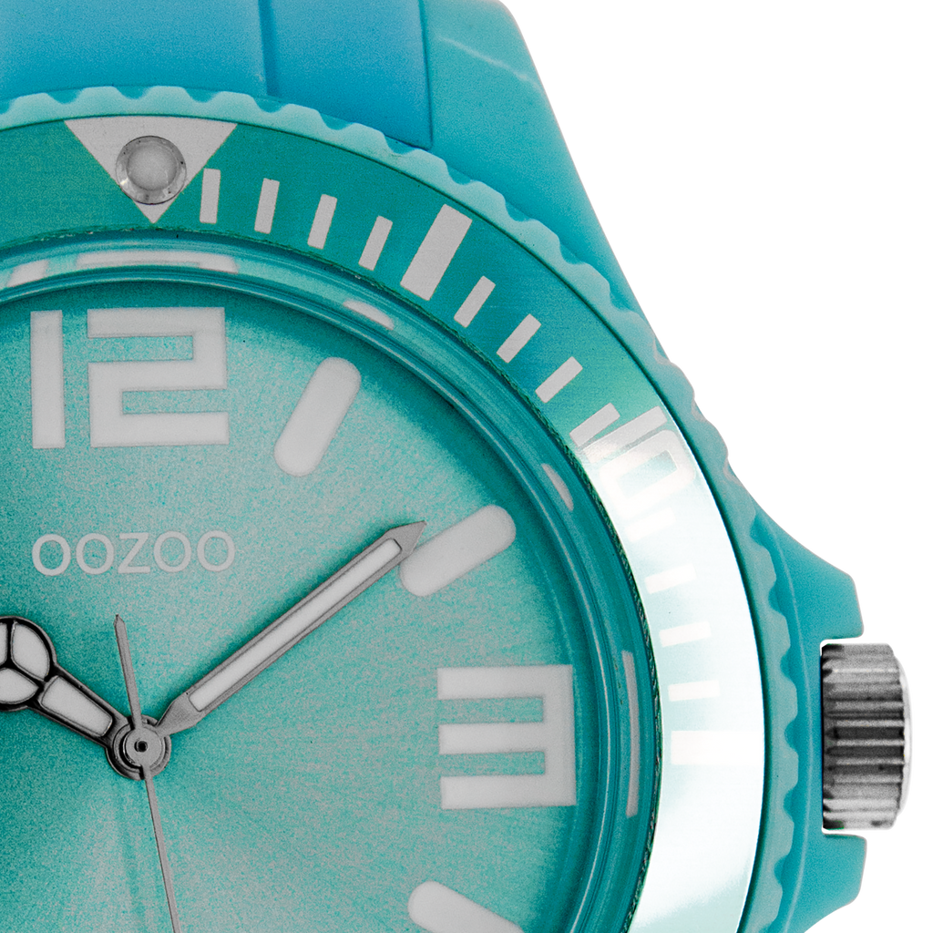 Stand out with this beautiful round unisex design from the trendy OOZOO Timepieces collection. The C4165 has a light blue rubber strap and 48 mm light blue plastic watch case. You are making quite the fashion statement with this light blue sunray dial, white stripes and numbers digits and silver coloured/white hands. This essential watch for your wardrobe has a mineral glass, stainless steel backplate and is nickel safe. This watch has a 2 Japanese movement and is covered by a 2 year warranty (see section 3 of our Refund, shipping & warranty policy).