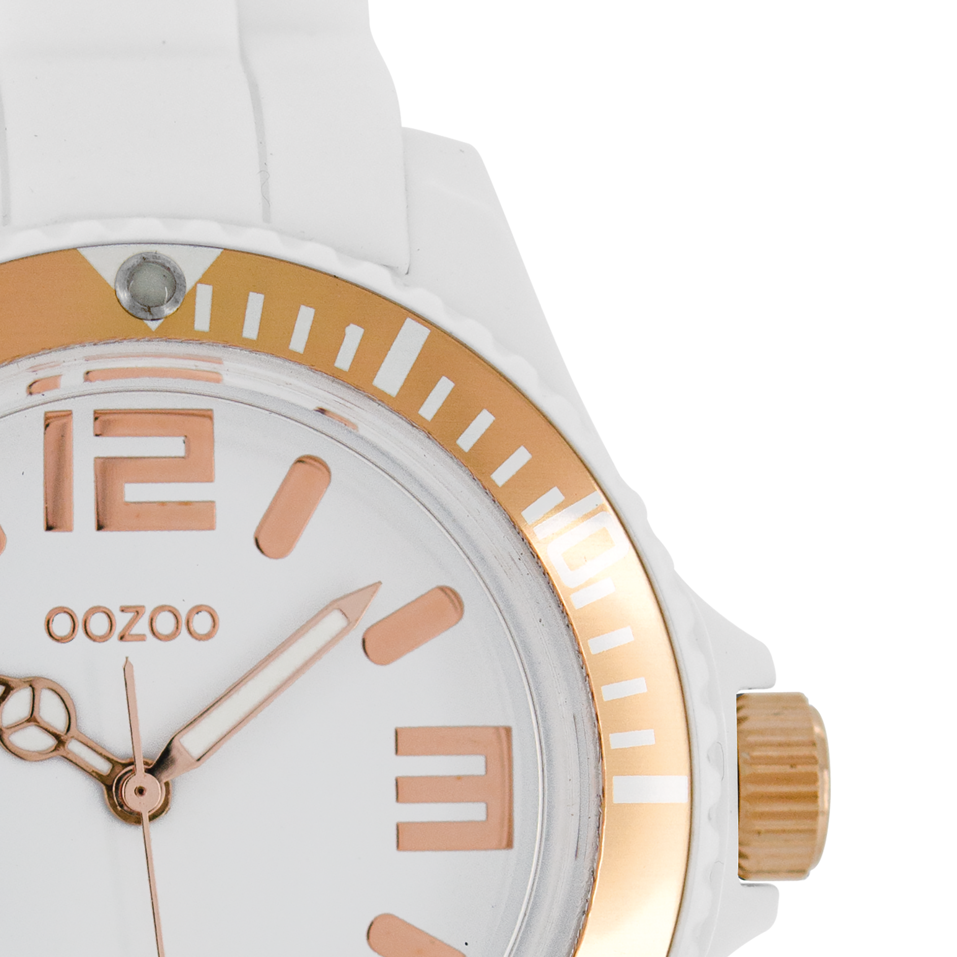 Stand out with this beautiful round unisex design from the trendy OOZOO Timepieces collection. The C4171 has a white rubber strap and 43 mm white plastic watch case. You are making quite the fashion statement with this white dial, rose gold coloured stripes and numbers digits and rose gold coloured/white hands. This essential watch for your wardrobe has a mineral glass, stainless steel backplate and is nickel safe. This watch has a 2 Japanese movement and is covered by a 2 year warranty (see section 3 of our Refund, shipping & warranty policy).