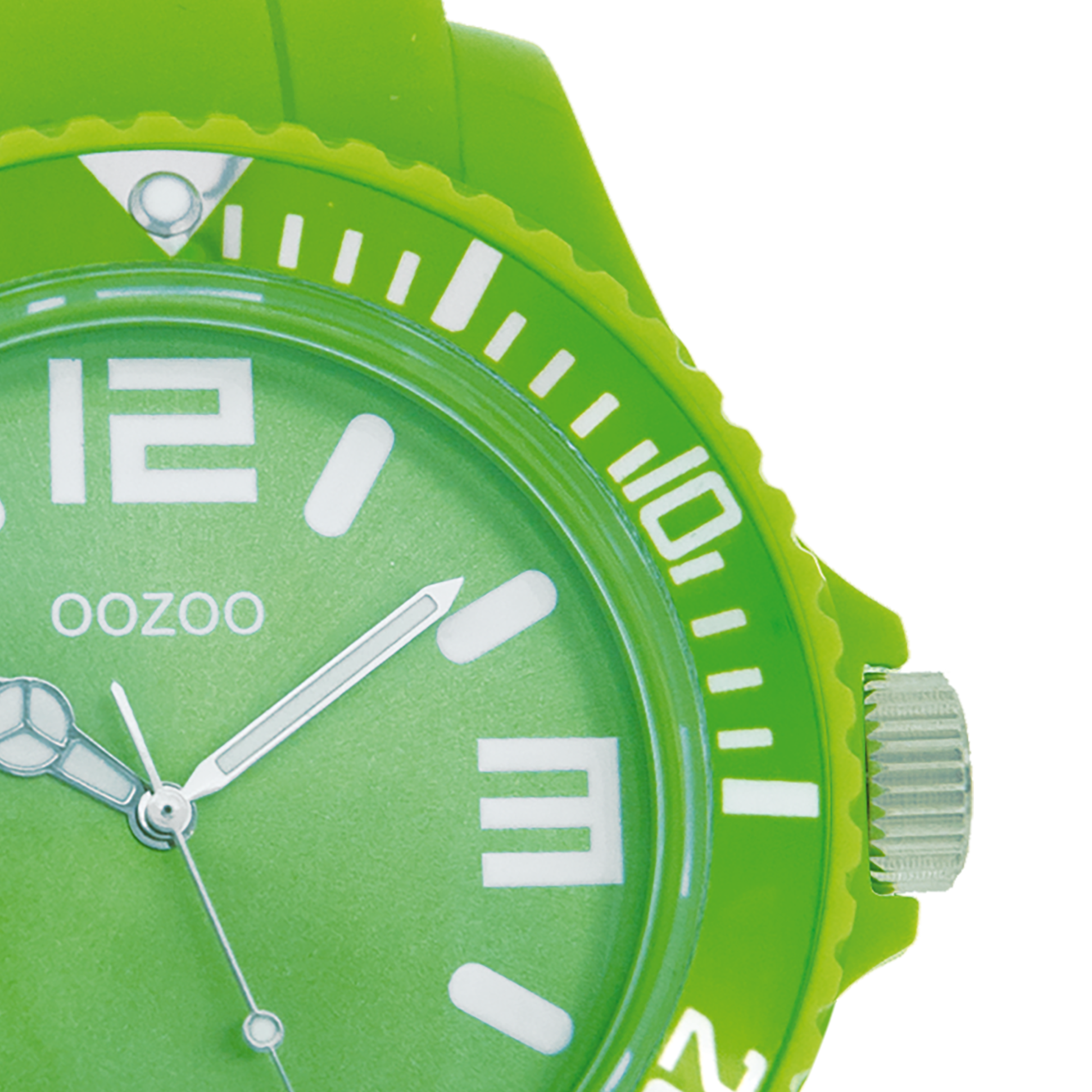 Stand out with this beautiful round unisex design from the trendy OOZOO Timepieces collection. The C4178 has a fluo green rubber strap and 43 mm fluo green plastic watch case. You are making quite the fashion statement with this fluo green sunray dial, white stripes and numbers digits and silver coloured/white hands. This essential watch for your wardrobe has a mineral glass, stainless steel backplate and is nickel safe. This watch has a 2 Japanese movement and is covered by a 2 year warranty (see section 3 of our Refund, shipping & warranty policy).