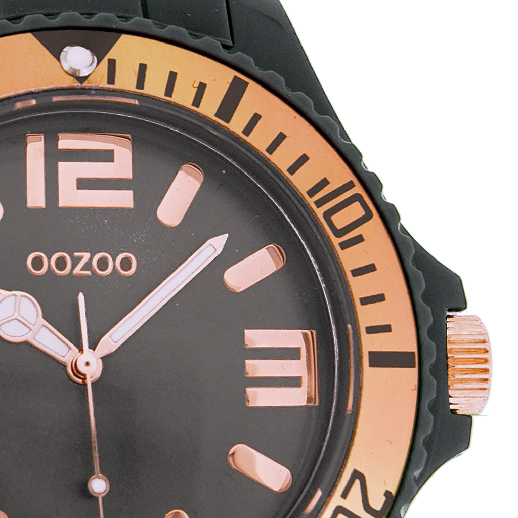 Stand out with this beautiful round unisex design from the trendy OOZOO Timepieces collection. The C4284 has a dark grey rubber strap and 48 mm dark grey plastic watch case. You are making quite the fashion statement with this dark grey sunray dial, rose gold coloured stripes and numbers digits and rose gold coloured/white hands. This essential watch for your wardrobe has a mineral glass, stainless steel backplate and is nickel safe. This watch has a 2 Japanese movement and is covered by a 2 year warranty (see section 3 of our Refund, shipping & warranty policy).