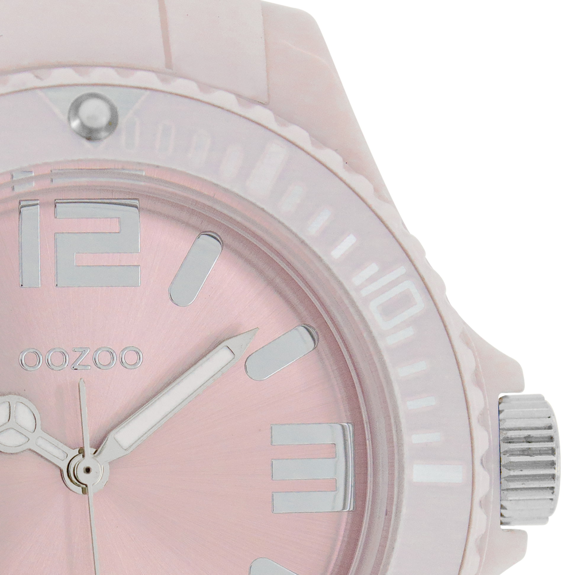Stand out with this beautiful round unisex design from the trendy OOZOO Timepieces collection. The C4345 has a soft pink rubber strap and 48 mm soft pink plastic watch case. You are making quite the fashion statement with this soft pink sunray dial, silver coloured stripes and numbers digits and silver coloured/white hands. This essential watch for your wardrobe has a mineral glass, stainless steel backplate and is nickel safe. This watch has a 2 Japanese movement and is covered by a 2 year warranty (see section 3 of our Refund, shipping & warranty policy).