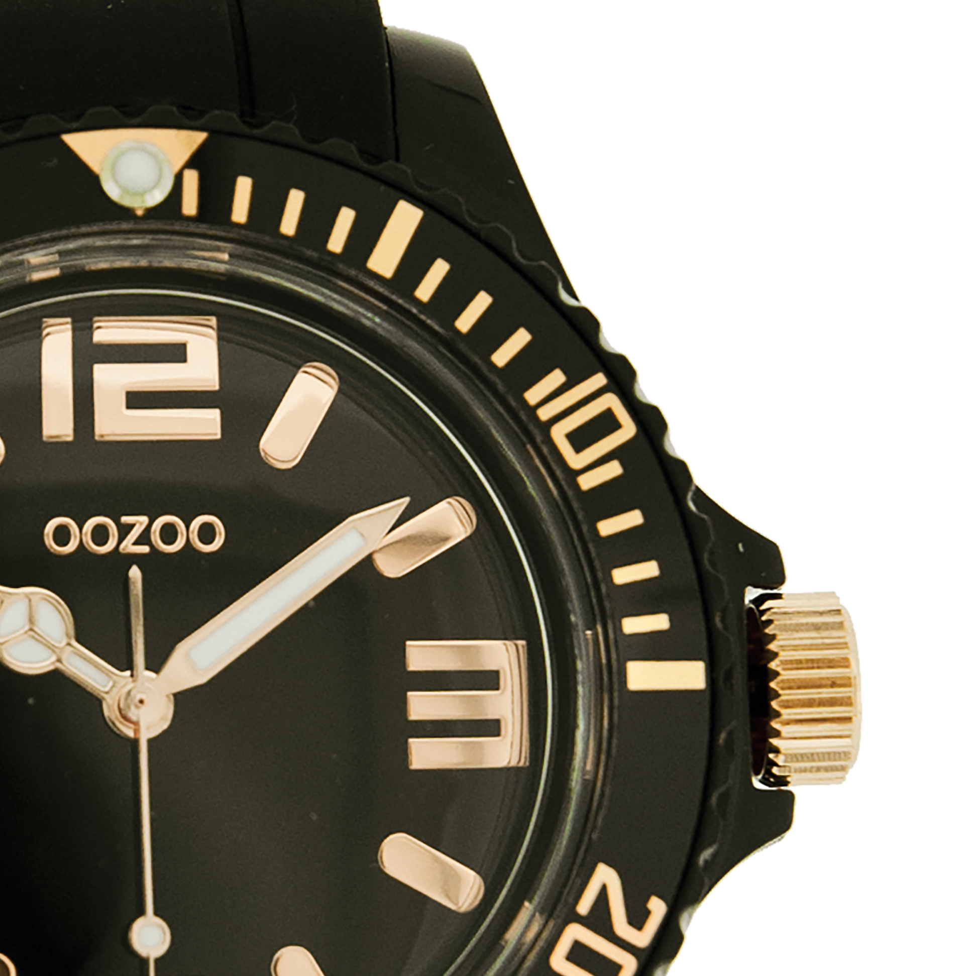 Stand out with this beautiful round unisex design from the trendy OOZOO Timepieces collection. The C4354 has a black rubber strap and 43 mm black plastic watch case. You are making quite the fashion statement with this black dial, rose gold coloured stripes and numbers digits and rose gold coloured/white hands. This essential watch for your wardrobe has a mineral glass, stainless steel backplate and is nickel safe. This watch has a 2 Japanese movement and is covered by a 2 year warranty (see section 3 of our Refund, shipping & warranty policy).