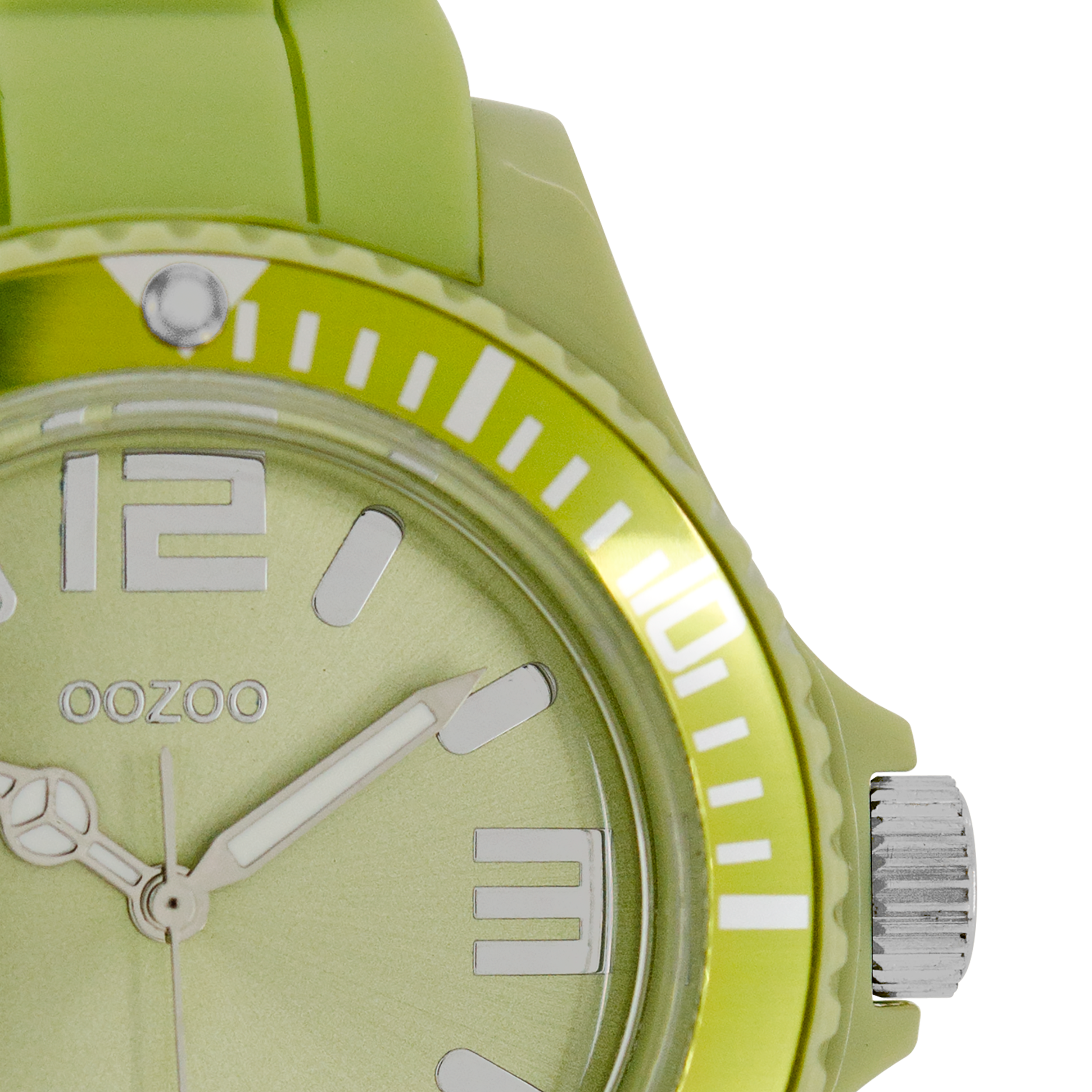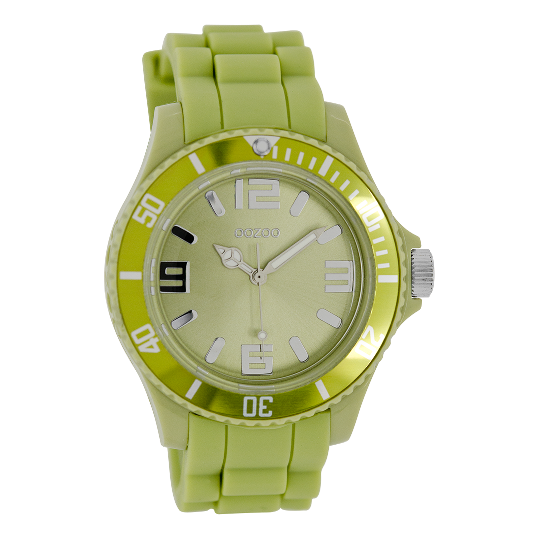 Stand out with this beautiful round unisex design from the trendy OOZOO Timepieces collection. The C4368 has a green rubber strap and 43 mm green plastic watch case. You are making quite the fashion statement with this green sunray dial, silver coloured stripes and numbers digits and silver coloured/white hands. This essential watch for your wardrobe has a mineral glass, stainless steel backplate and is nickel safe. This watch has a 2 Japanese movement and is covered by a 2 year warranty (see section 3 of our Refund, shipping & warranty policy).