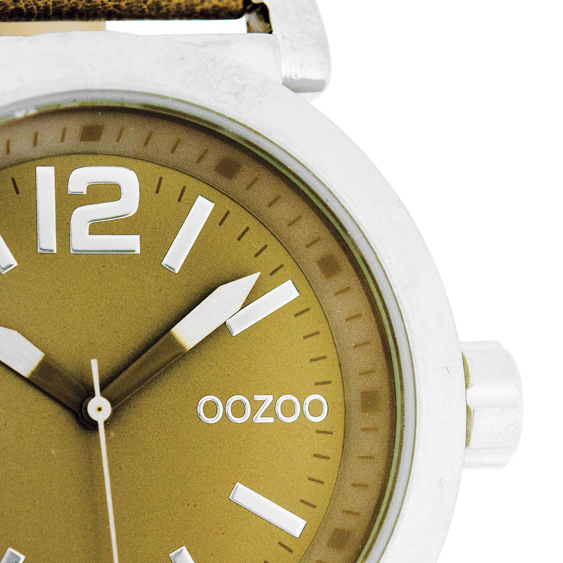 Stand out with this beautiful round unisex design from the trendy OOZOO Timepieces collection. The C4455 has a studded mustard yellow leather strap and 40 mm silver coloured metal watch case. You are making quite the fashion statement with this mustard yellow sunray dial, silver coloured stripes and numbers digits and matching hands. This essential watch for your wardrobe has a mineral glass, stainless steel backplate and is nickel safe. This watch has a 2 Japanese movement and is covered by a 2 year warranty (see section 3 of our Refund, shipping & warranty policy).