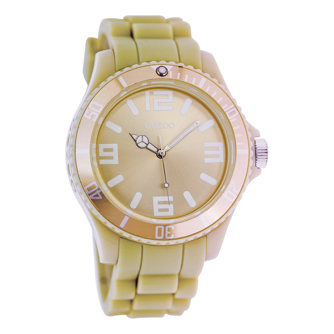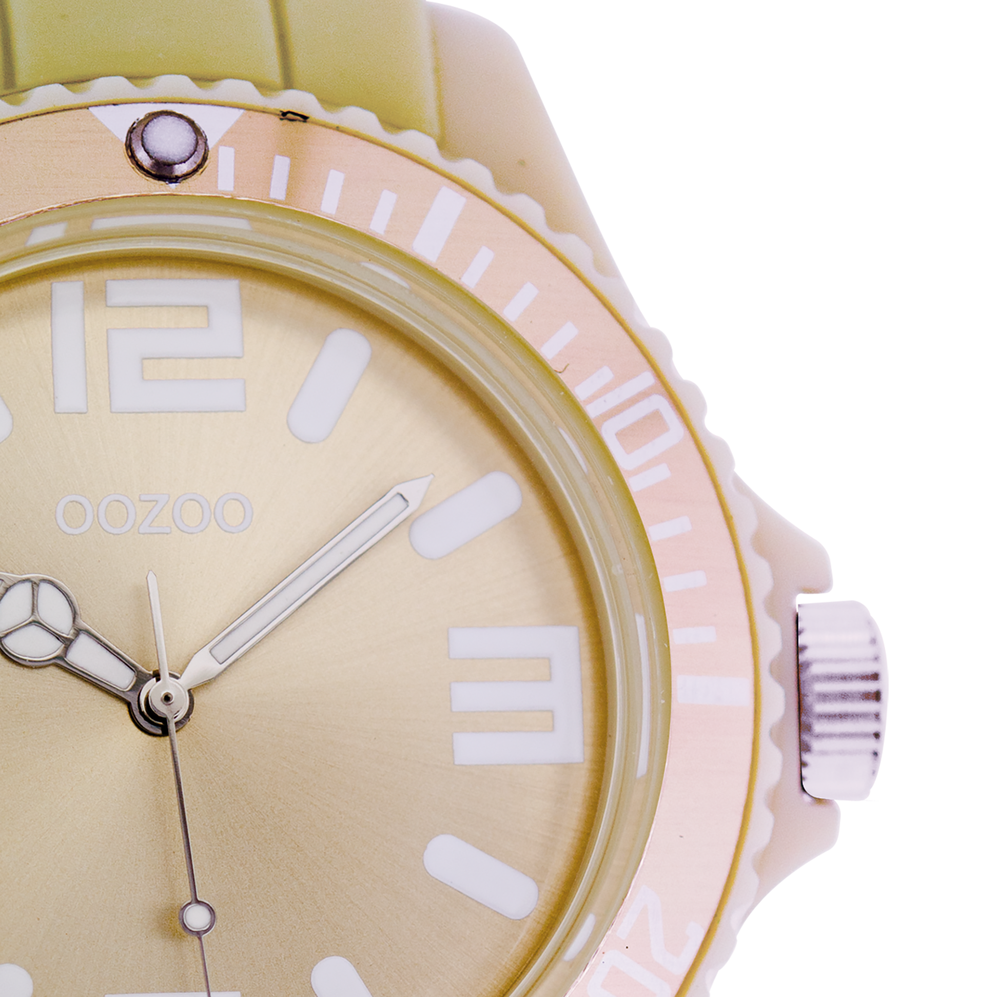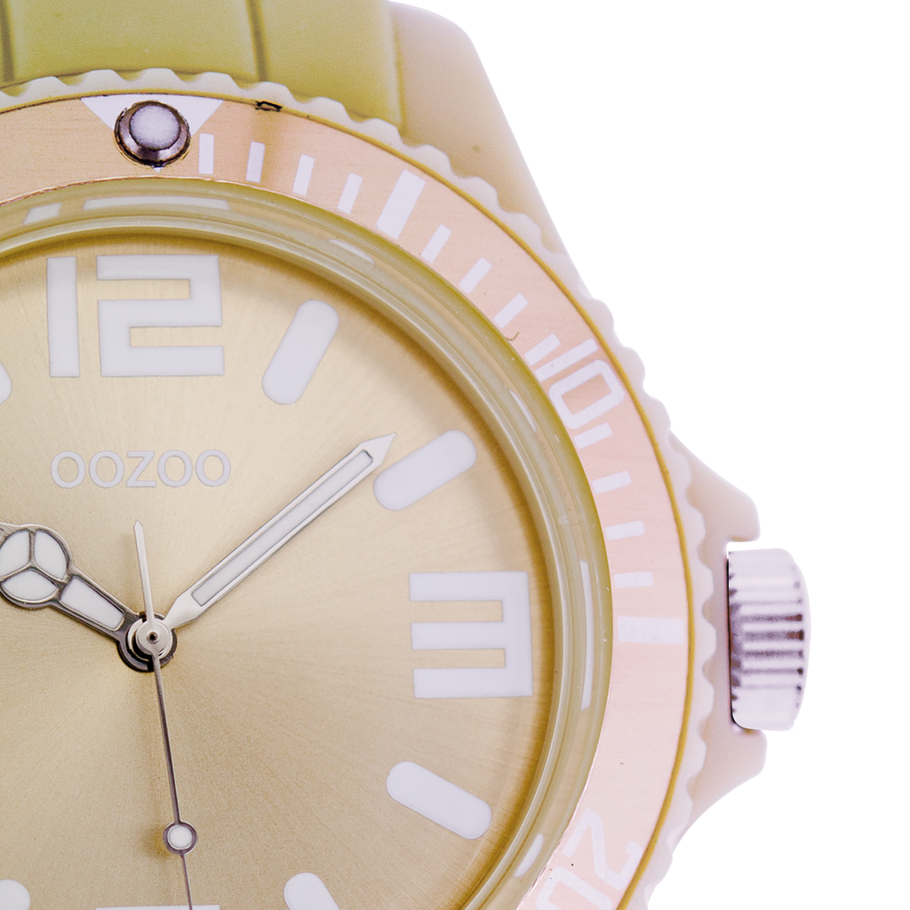 Stand out with this beautiful round unisex design from the trendy OOZOO Timepieces collection. The C4662 has a beige rubber strap and 43 mm beige plastic watch case. You are making quite the fashion statement with this beige sunray dial, white stripes and numbers digits and silver coloured/white hands. This essential watch for your wardrobe has a mineral glass, stainless steel backplate and is nickel safe. This watch has a 2 Japanese movement and is covered by a 2 year warranty (see section 3 of our Refund, shipping & warranty policy).