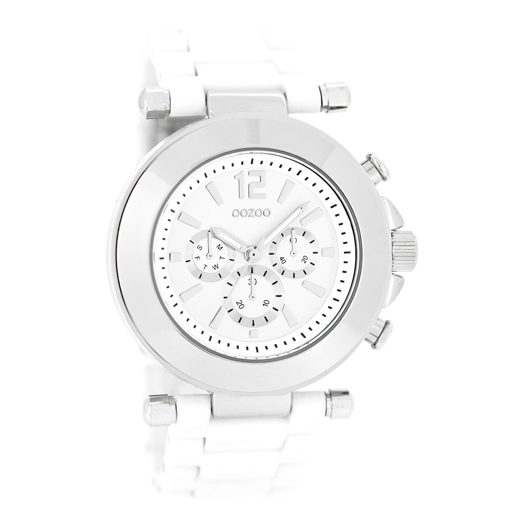 Stand out with this beautiful round ladies design from the trendy OOZOO Timepieces collection. The C4880 has a matte white plastic watch strap and 40 mm silver coloured metal watch case. You are making quite the fashion statement with this white chrono dial, silver coloured stripes and numbers digits and silver coloured/white hands. This essential watch for your wardrobe has a mineral glass, stainless steel backplate and is nickel safe. This watch has a 2 Japanese movement and is covered by a 2 year warranty (see section 3 of our Refund, shipping & warranty policy).