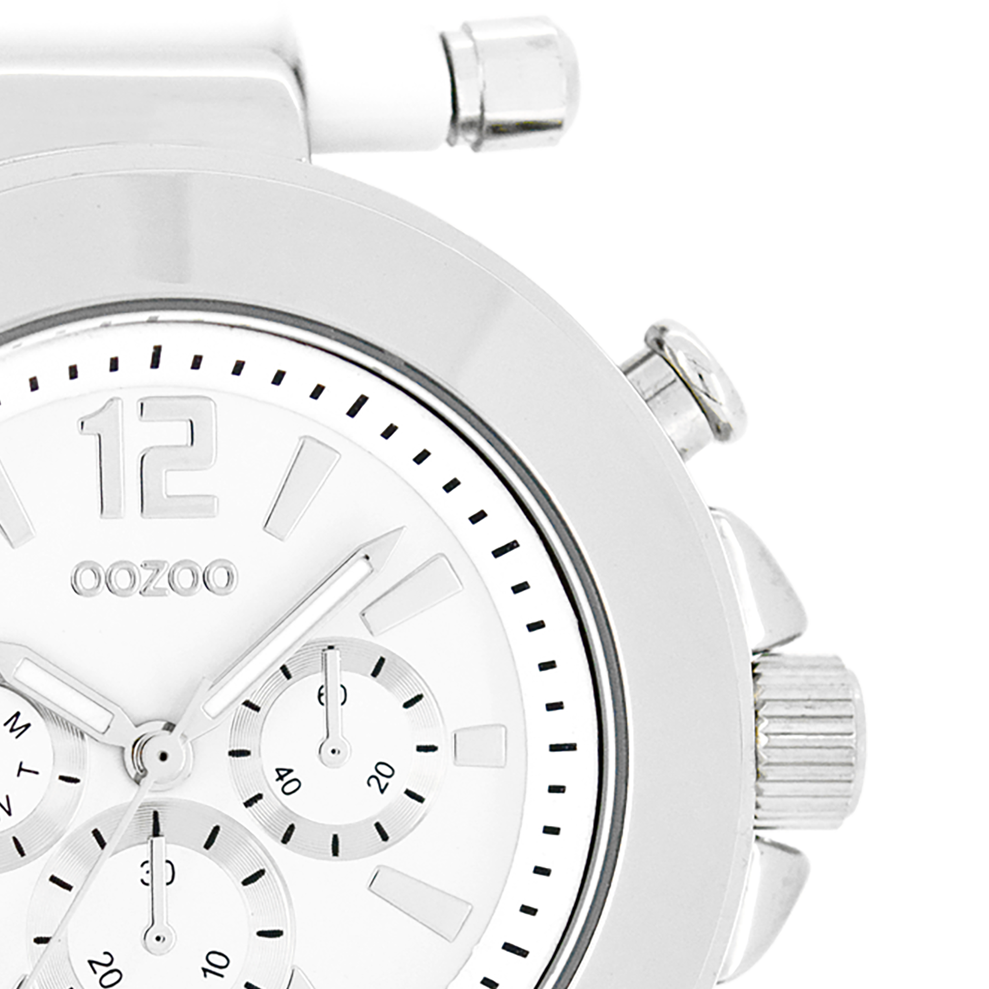 Silver coloured OOZOO watch with white plastic watch strap - C4880