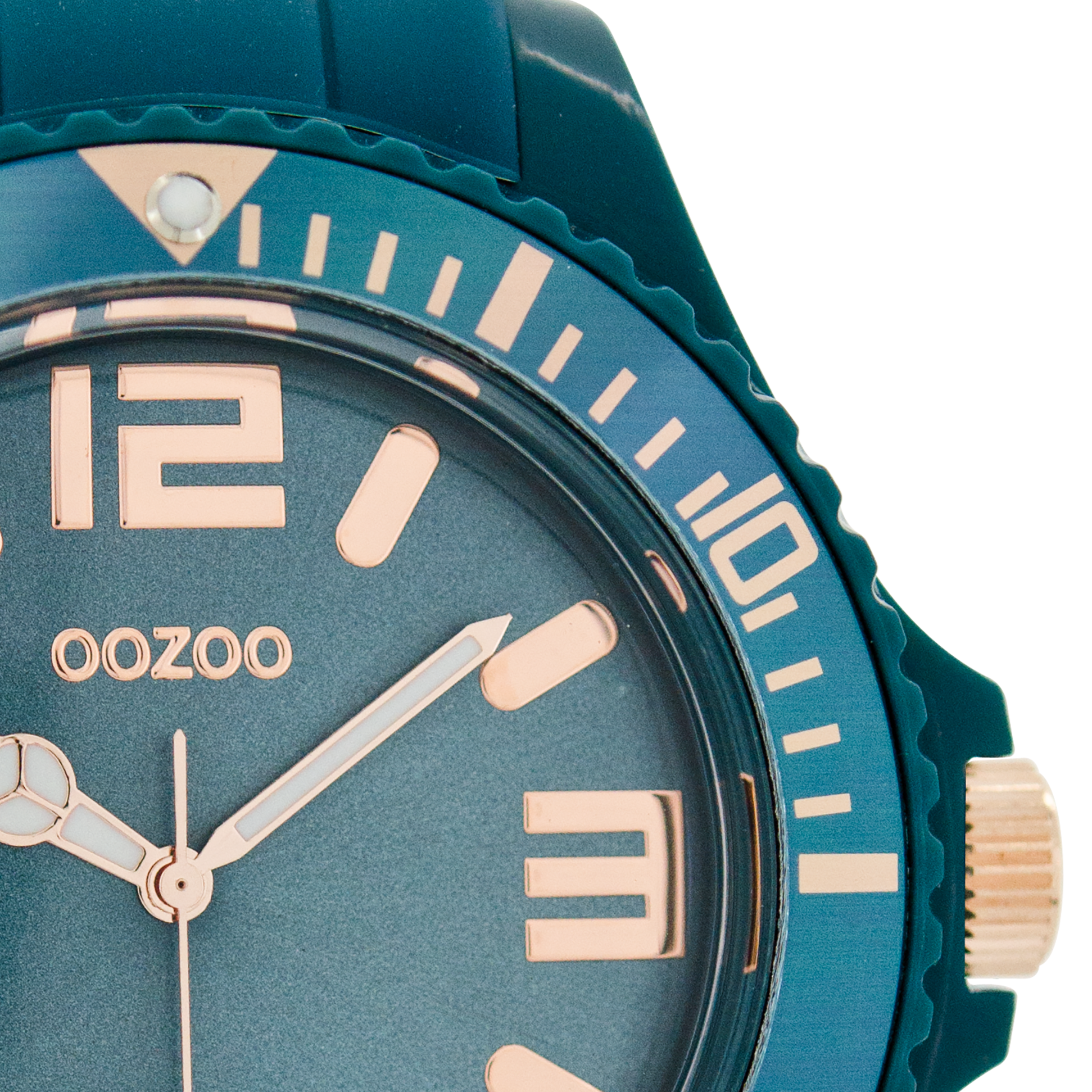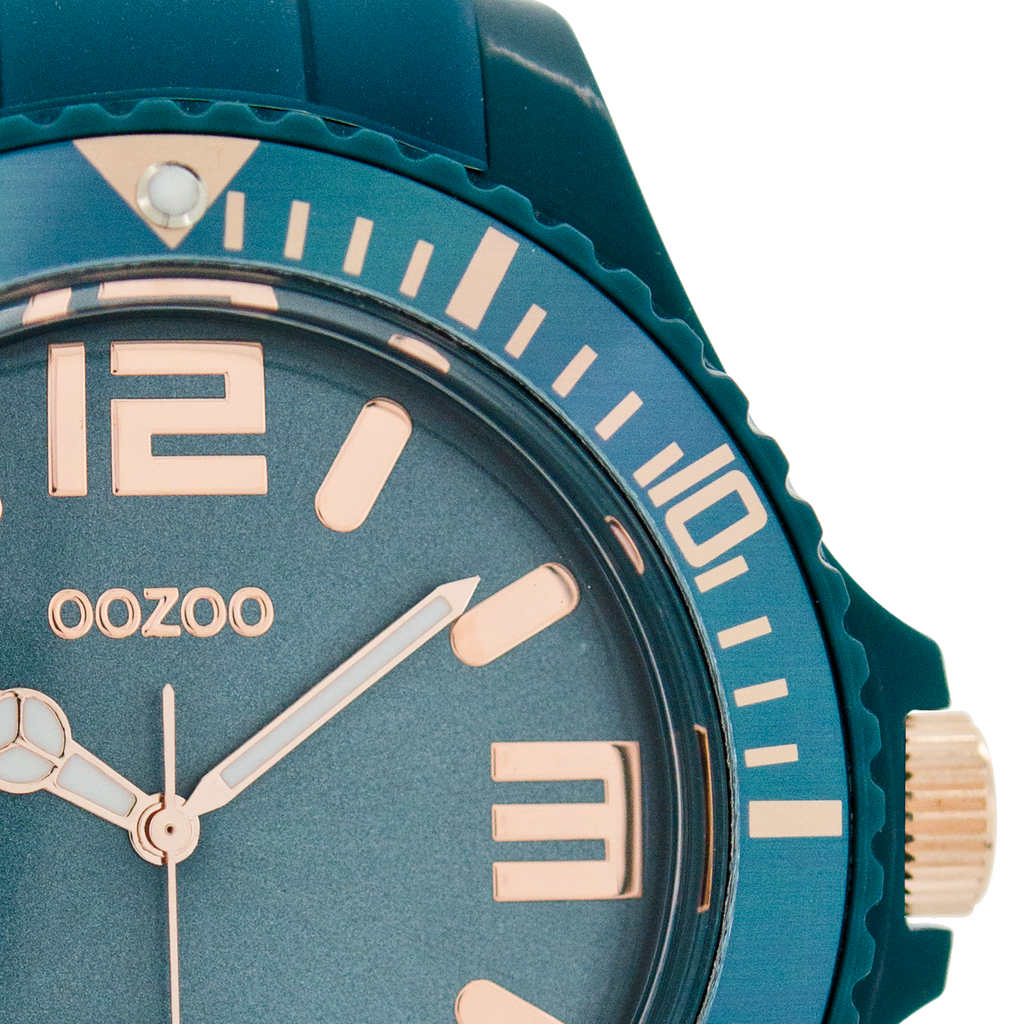 Stand out with this beautiful round unisex design from the trendy OOZOO Timepieces collection. The C5032 has a aqua blue rubber strap and 48 mm aqua blue plastic watch case. You are making quite the fashion statement with this aqua blue sunray dial, rose gold coloured stripes and numbers digits and rose gold coloured/white hands. This essential watch for your wardrobe has a mineral glass, stainless steel backplate and is nickel safe. This watch has a 2 Japanese movement and is covered by a 2 year warranty (see section 3 of our Refund, shipping & warranty policy).