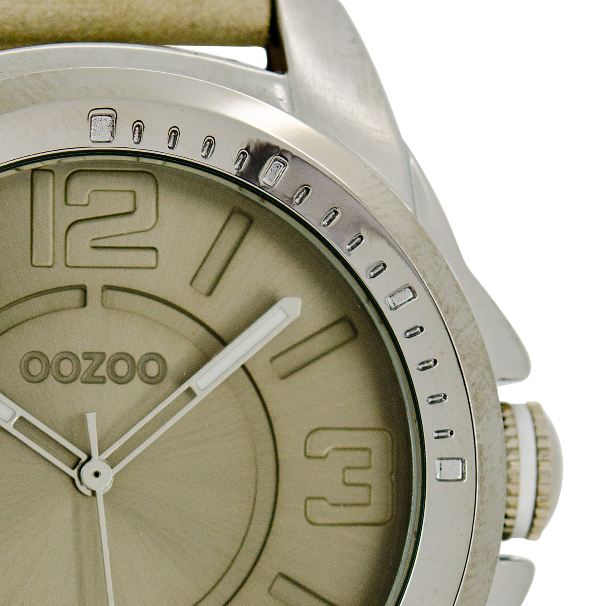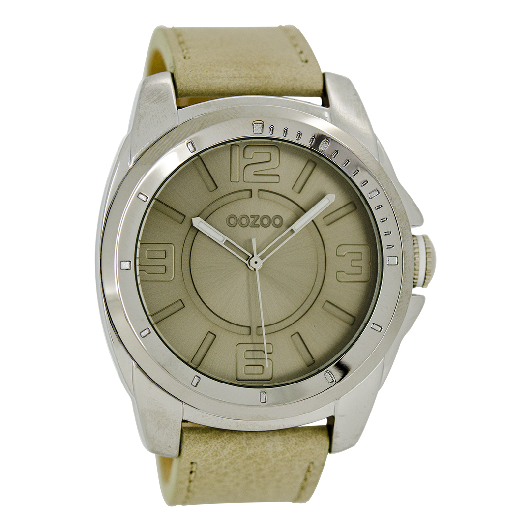 Silver coloured OOZOO watch with sand leather strap - C5335