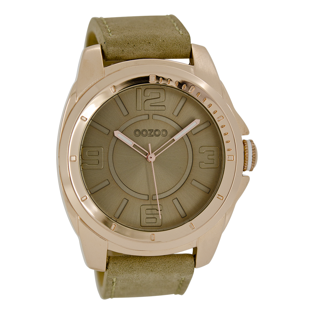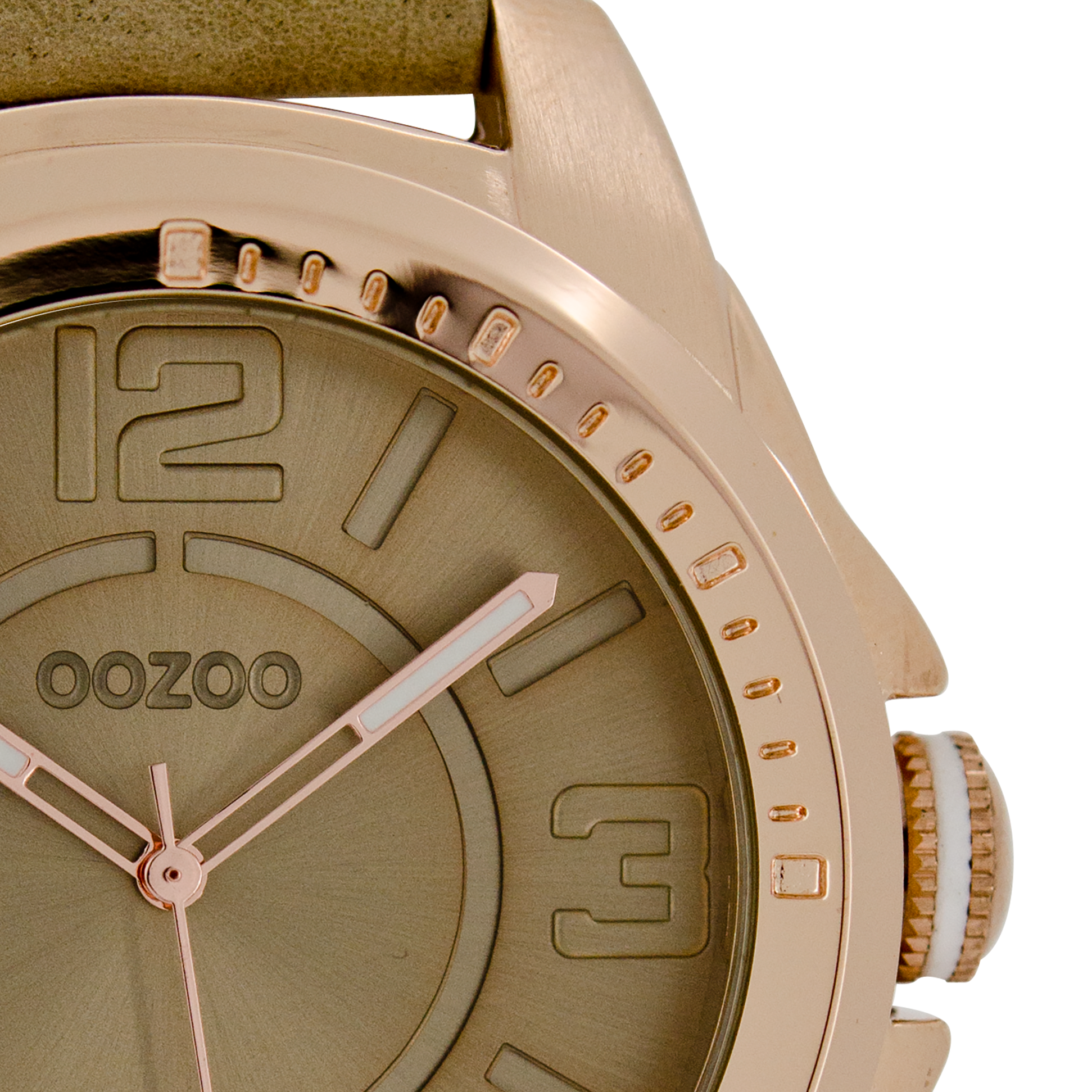 Rose gold coloured OOZOO watch with beige leather strap - C5336