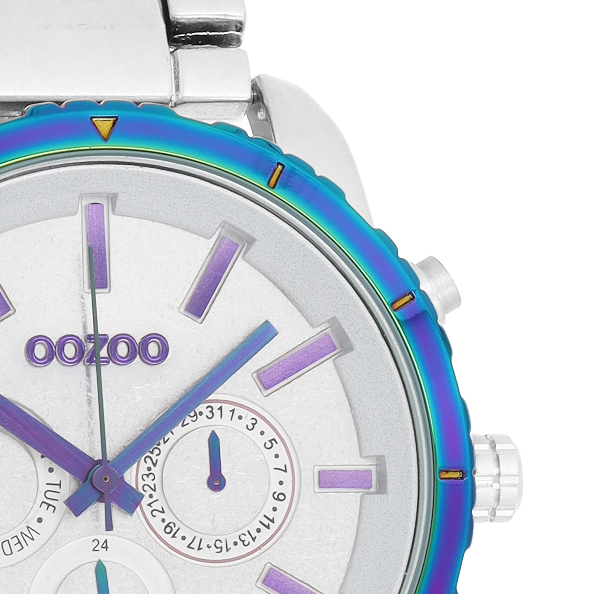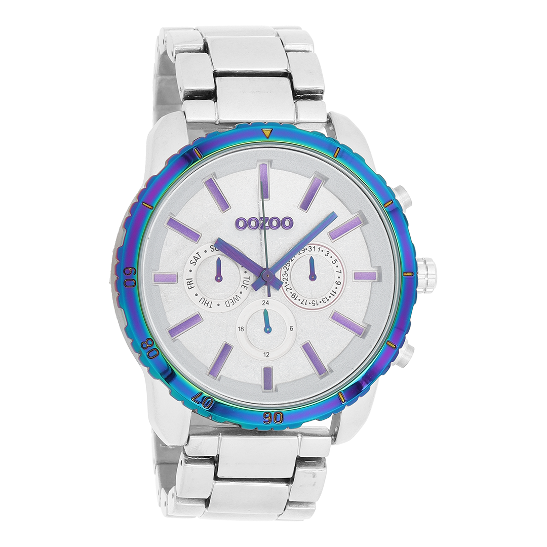 Stand out with this beautiful round gents design from the trendy OOZOO Timepieces collection. The C5598 has a silver coloured stainless steel bracelet and 48 mm silver coloured metal watch case. You are making quite the fashion statement with this white chrono dial, purple stripes digits and matching hands. This essential watch for your wardrobe has a mineral glass, stainless steel backplate and is nickel safe. This watch has a 2 Japanese movement and is covered by a 2 year warranty (see section 3 of our Refund, shipping & warranty policy).