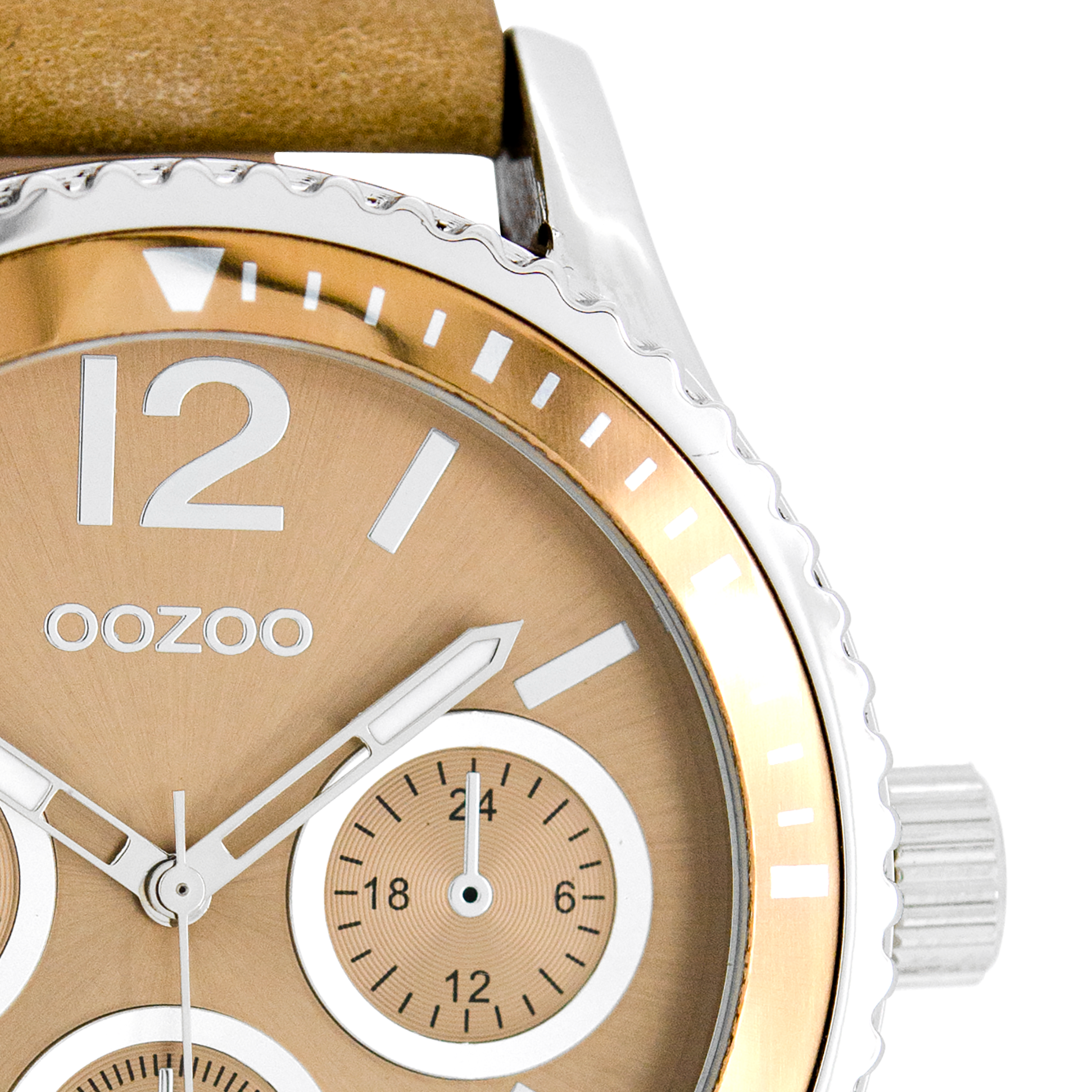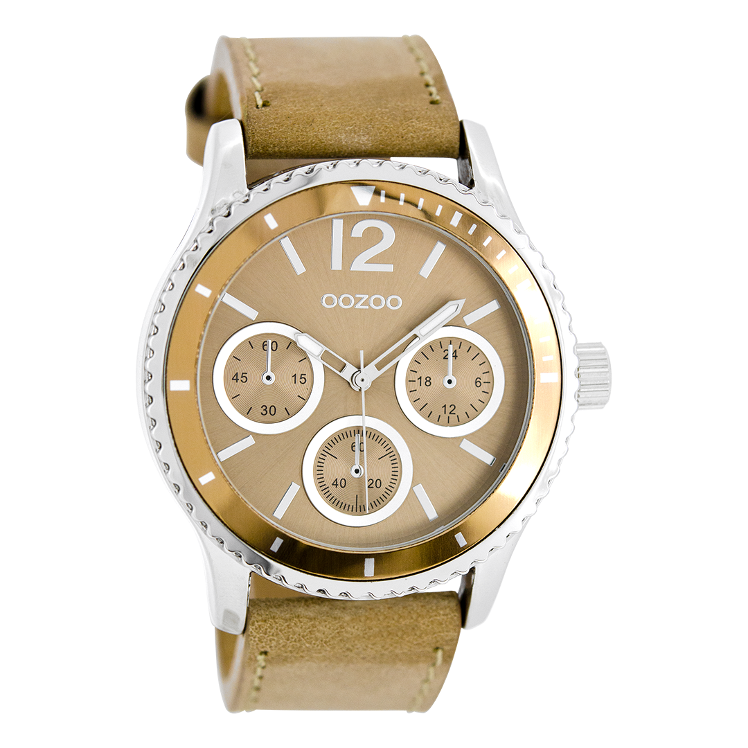 Silver coloured OOZOO watch with sand leather strap - C5676