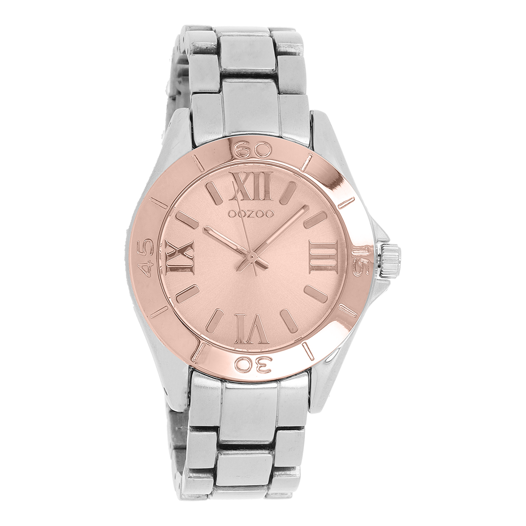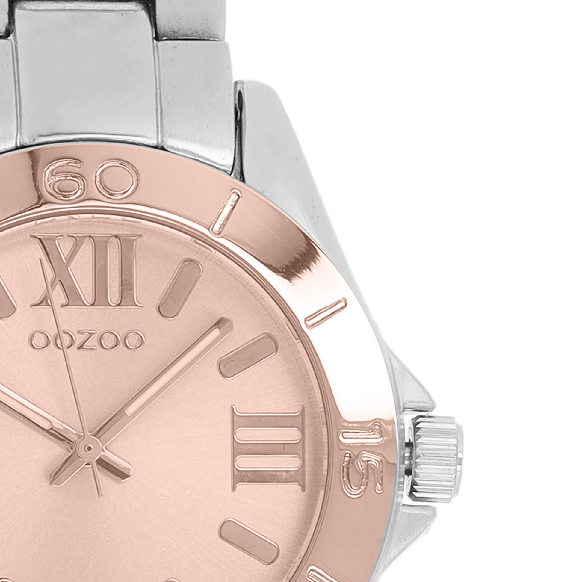 Silver coloured/rose gold OOZOO watch with silver coloured stainless steel bracelet - C5708