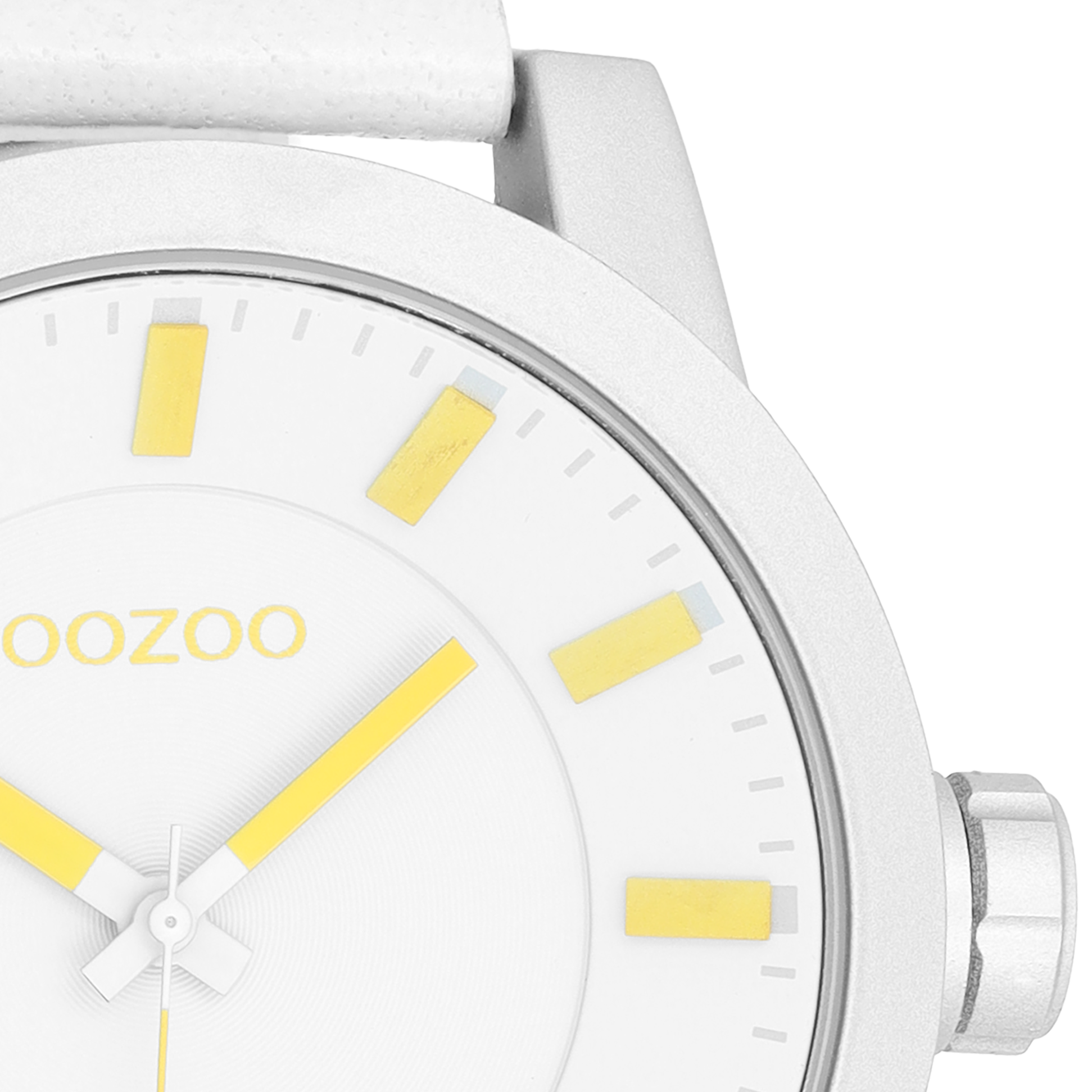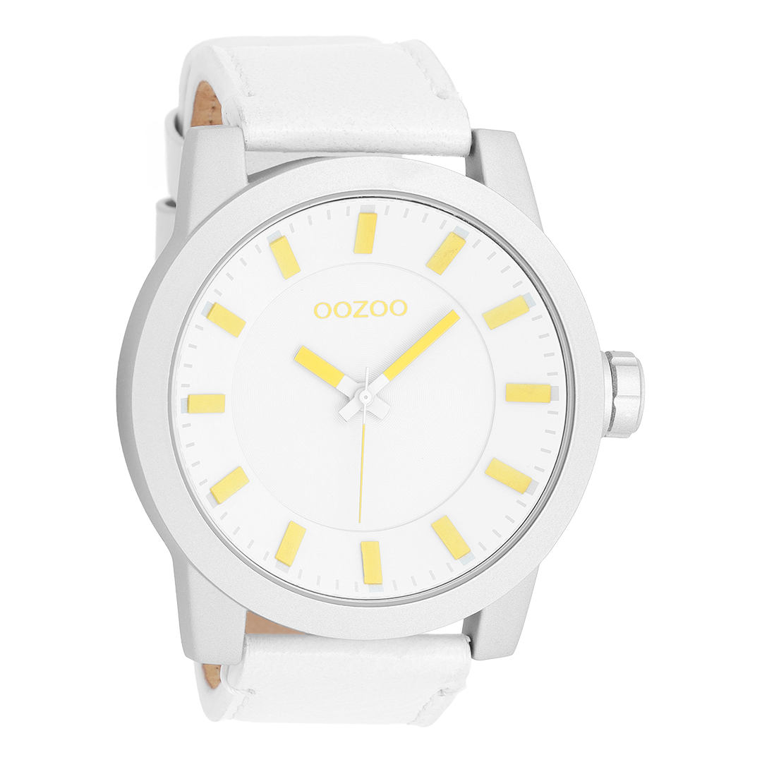 Stand out with this beautiful round unisex design from the trendy OOZOO Timepieces collection. The C5780 has a stitched white stainless steel bracelet and 48 mm silver coloured metal watch case. You are making quite the fashion statement with this white dial, yellow stripes digits and matching hands. This essential watch for your wardrobe has a mineral glass, stainless steel backplate and is nickel safe. This watch has a 2 Japanese movement and is covered by a 2 year warranty (see section 3 of our Refund, shipping & warranty policy).