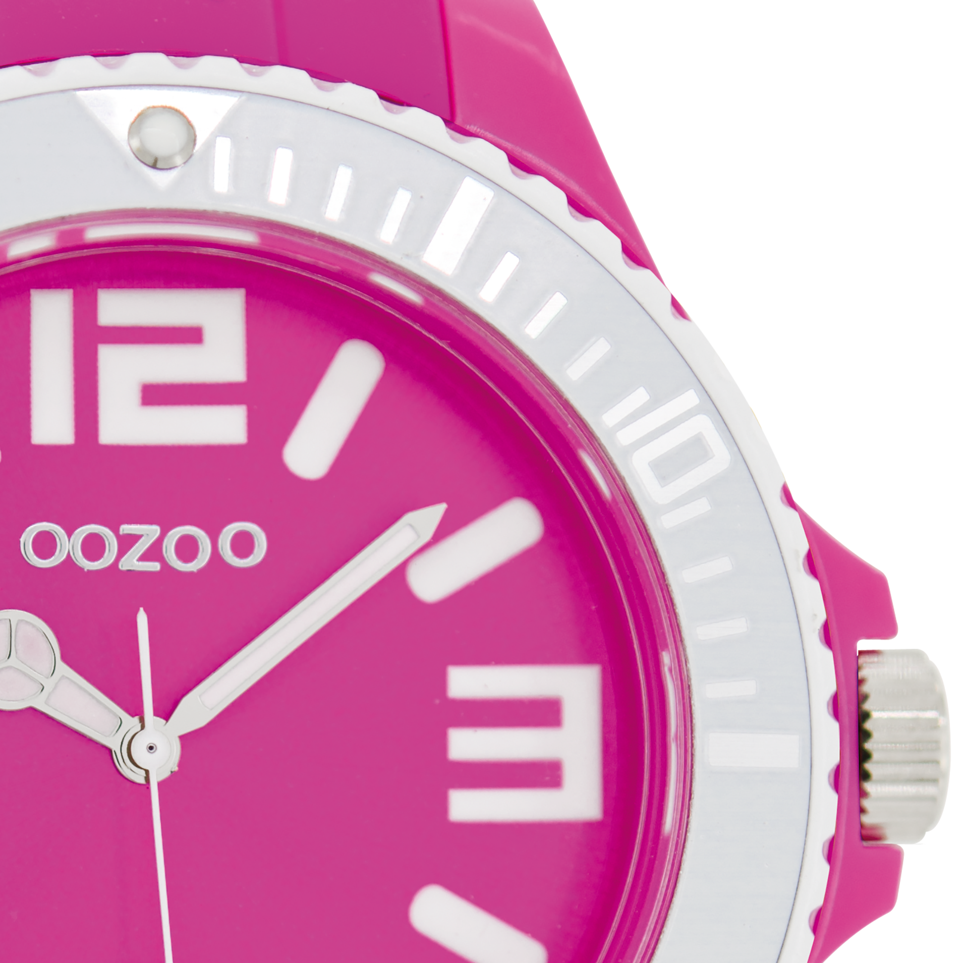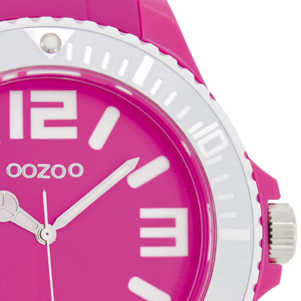 Stand out with this beautiful round unisex design from the trendy OOZOO Timepieces collection. The C5818 has a pink rubber strap and 48 mm pink plastic watch case. You are making quite the fashion statement with this pink dial, white stripes and numbers digits and silver coloured/white hands. This essential watch for your wardrobe has a mineral glass, stainless steel backplate and is nickel safe. This watch has a 2 Japanese movement and is covered by a 2 year warranty (see section 3 of our Refund, shipping & warranty policy).