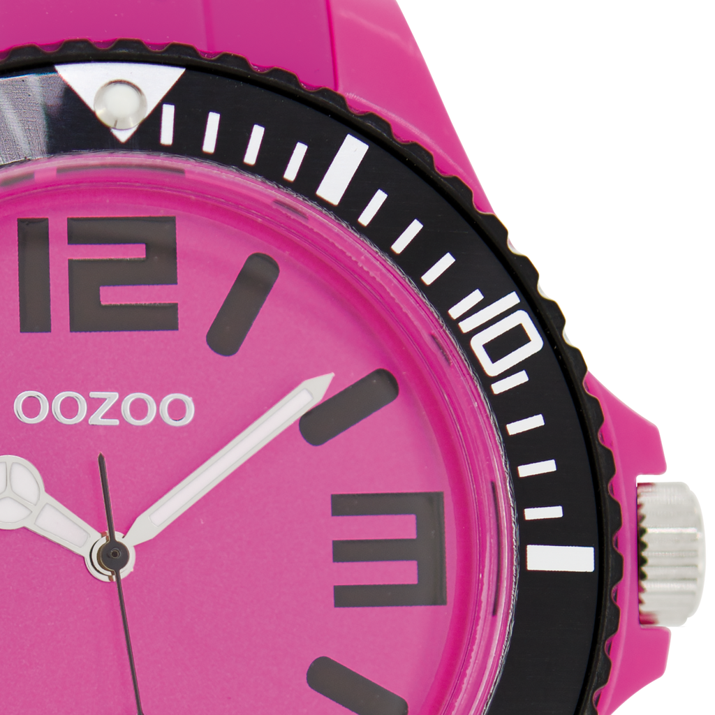 Stand out with this beautiful round unisex design from the trendy OOZOO Timepieces collection. The C5819 has a pink rubber strap and 48 mm pink plastic watch case. You are making quite the fashion statement with this pink dial, black stripes and numbers digits and silver coloured/white hands. This essential watch for your wardrobe has a mineral glass, stainless steel backplate and is nickel safe. This watch has a 2 Japanese movement and is covered by a 2 year warranty (see section 3 of our Refund, shipping & warranty policy).