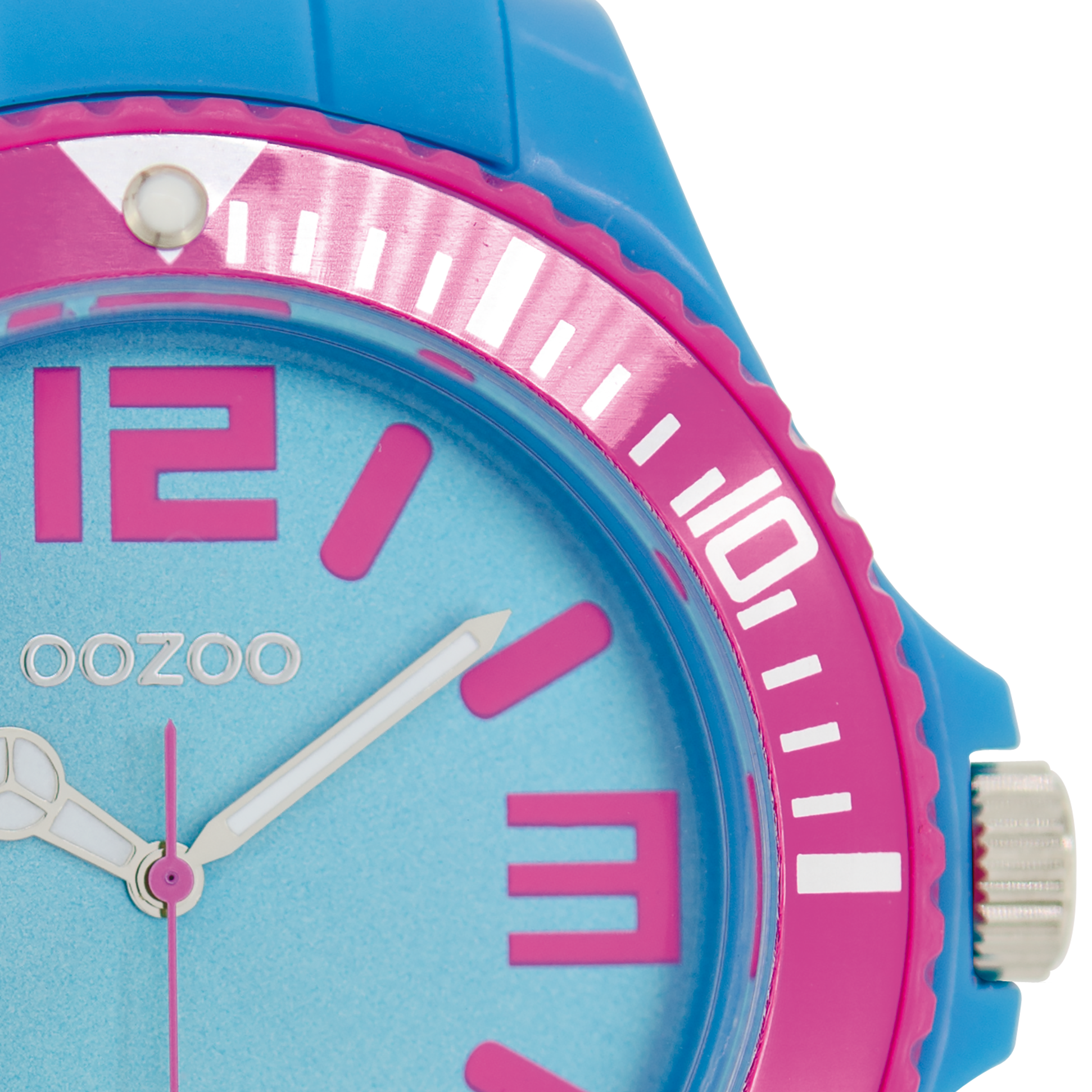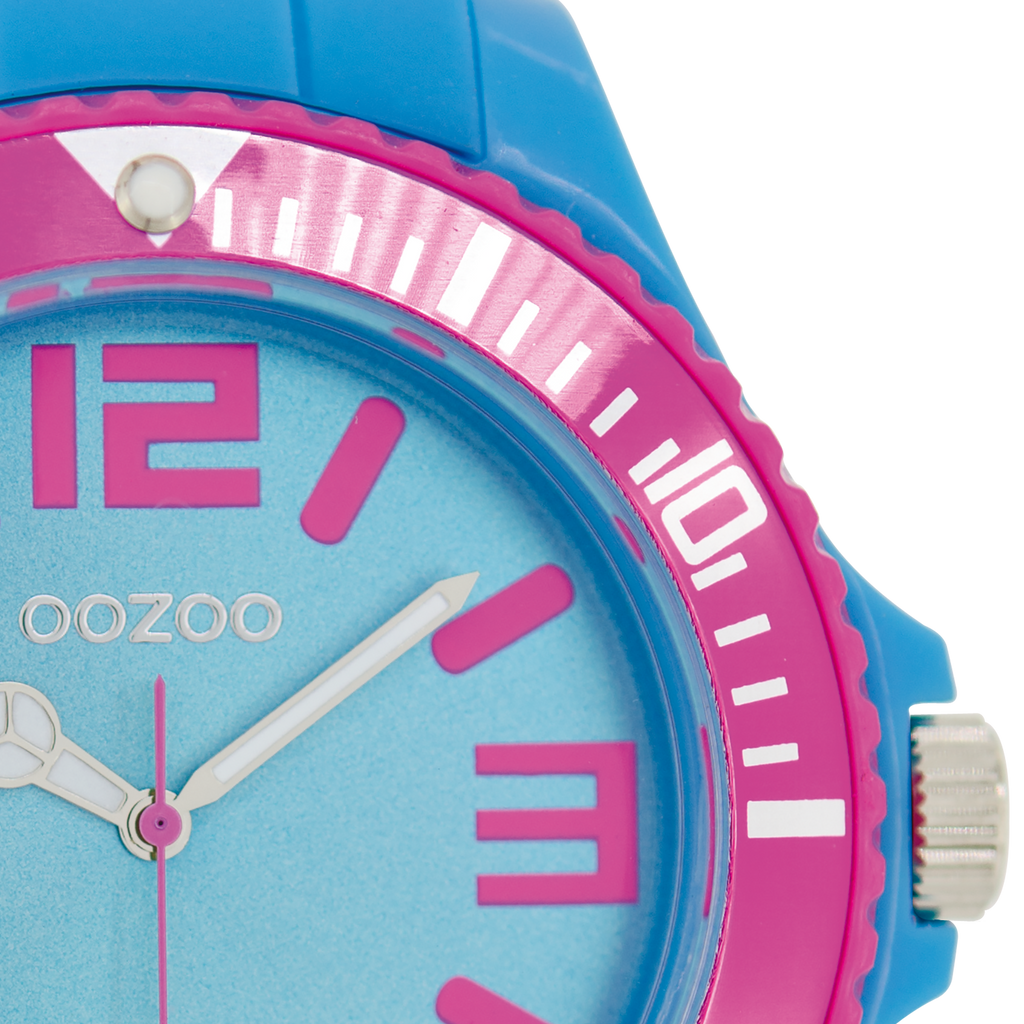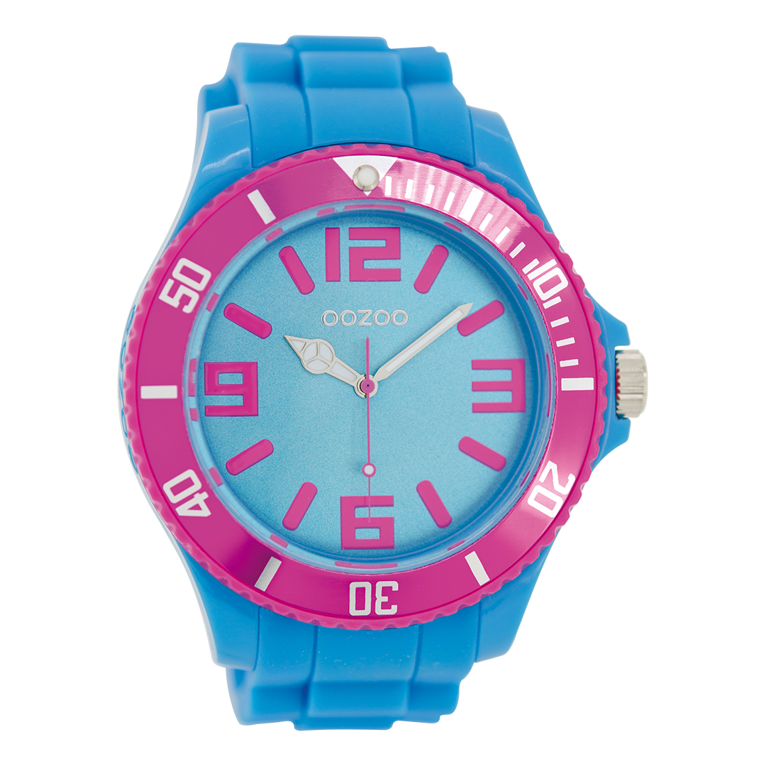 Stand out with this beautiful round unisex design from the trendy OOZOO Timepieces collection. The C5831 has a blue rubber strap and 48 mm blue plastic watch case. You are making quite the fashion statement with this blue dial, pink stripes and numbers digits and silver coloured/white hands. This essential watch for your wardrobe has a mineral glass, stainless steel backplate and is nickel safe. This watch has a 2 Japanese movement and is covered by a 2 year warranty (see section 3 of our Refund, shipping & warranty policy).