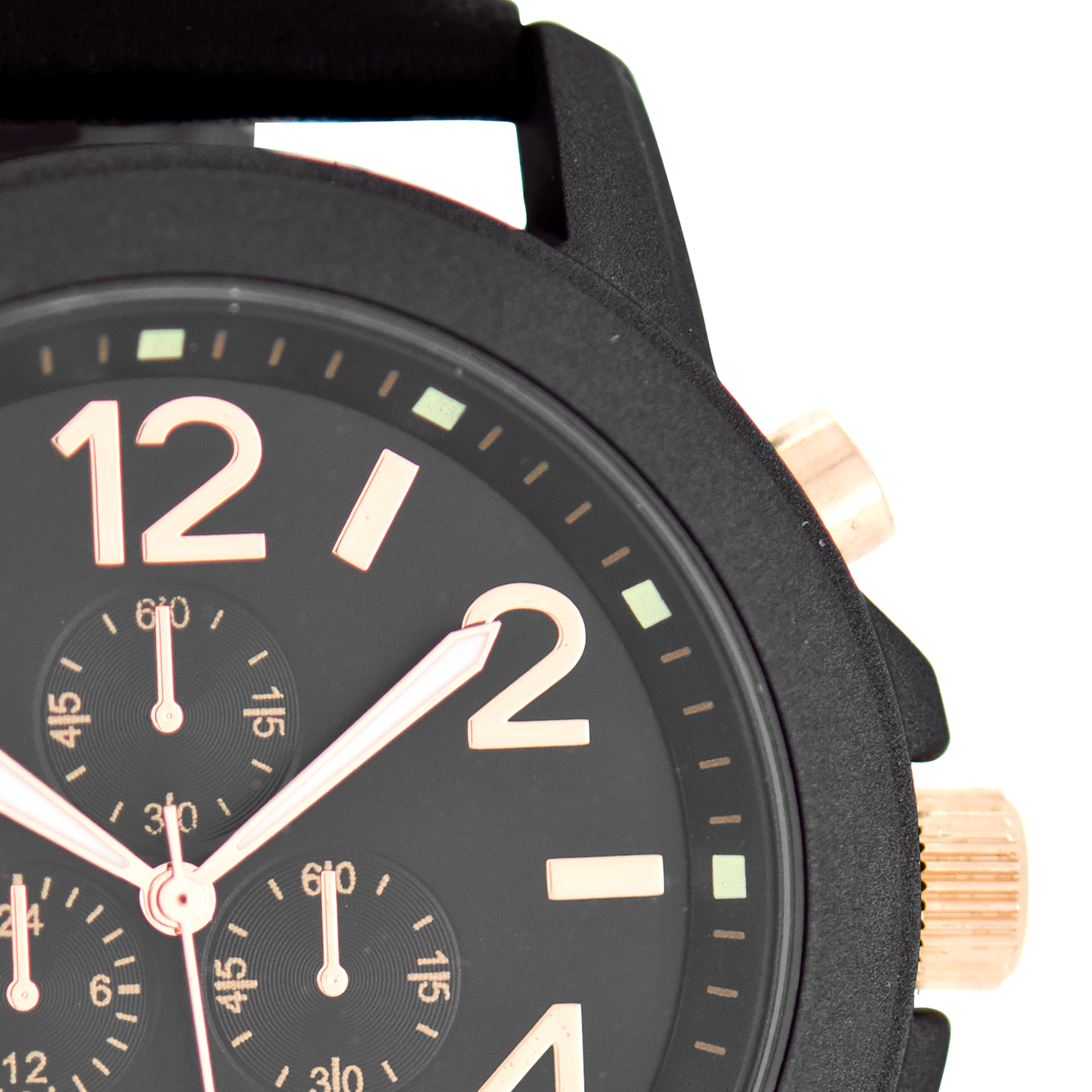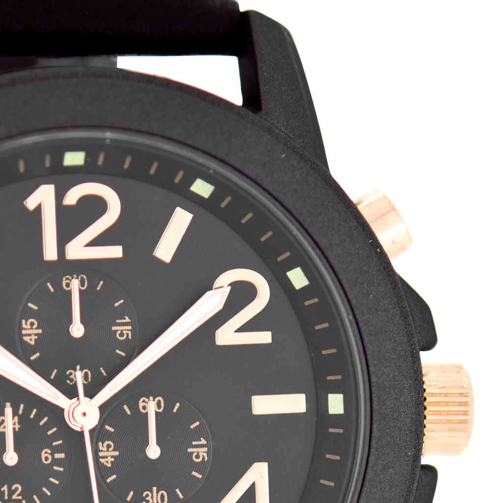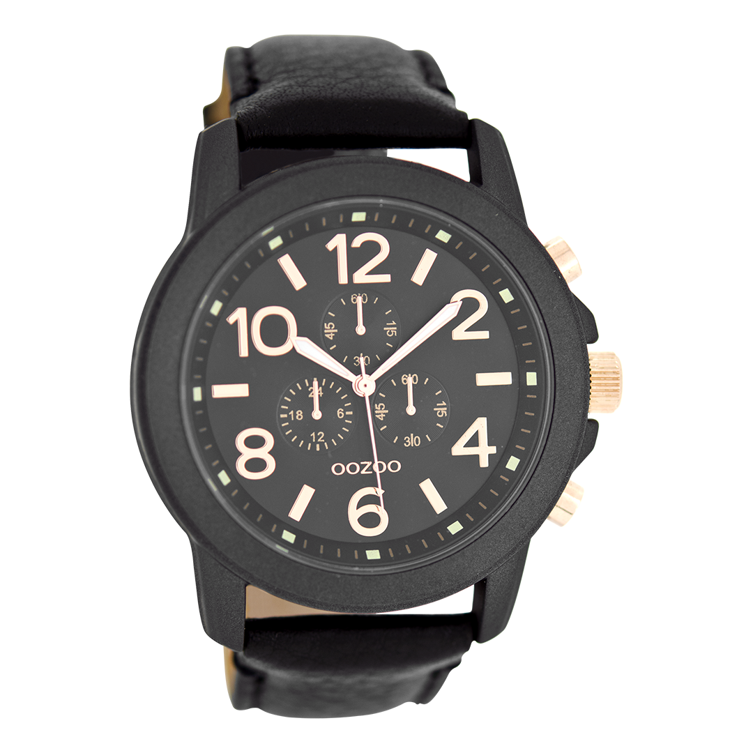 Stand out with this beautiful round gents design from the trendy OOZOO Timepieces collection. The C6064 has a stitched black leather strap and 46 mm black matte watch case. You are making quite the fashion statement with this black chrono dial, rose gold coloured stripes and numbers digits and rose gold coloured/white hands. This essential watch for your wardrobe has a mineral glass, stainless steel backplate and is nickel safe. This watch has a 2 Japanese movement and is covered by a 2 year warranty (see section 3 of our Refund, shipping & warranty policy).
