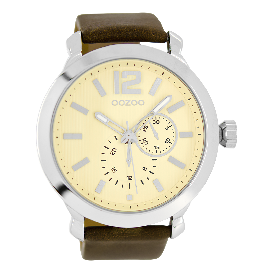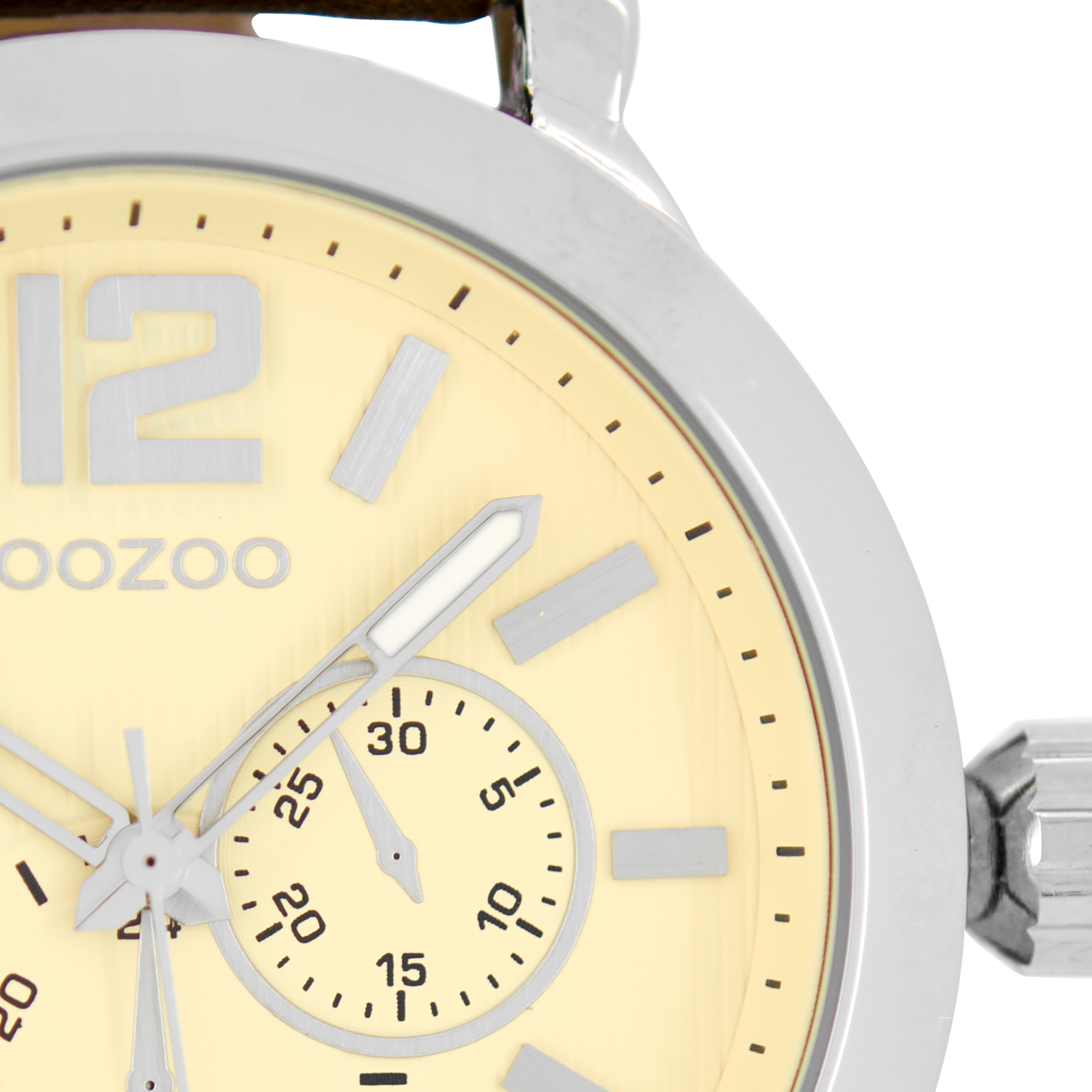 Stand out with this beautiful round gents design from the trendy OOZOO Timepieces collection. The C6076 has a dark brown leather strap and 40 mm silver coloured metal watch case. You are making quite the fashion statement with this cream chrono dial, silver coloured stripes and numbers digits and silver coloured/white hands. This essential watch for your wardrobe has a mineral glass, stainless steel backplate and is nickel safe. This watch has a 2 Japanese movement and is covered by a 2 year warranty (see section 3 of our Refund, shipping & warranty policy).