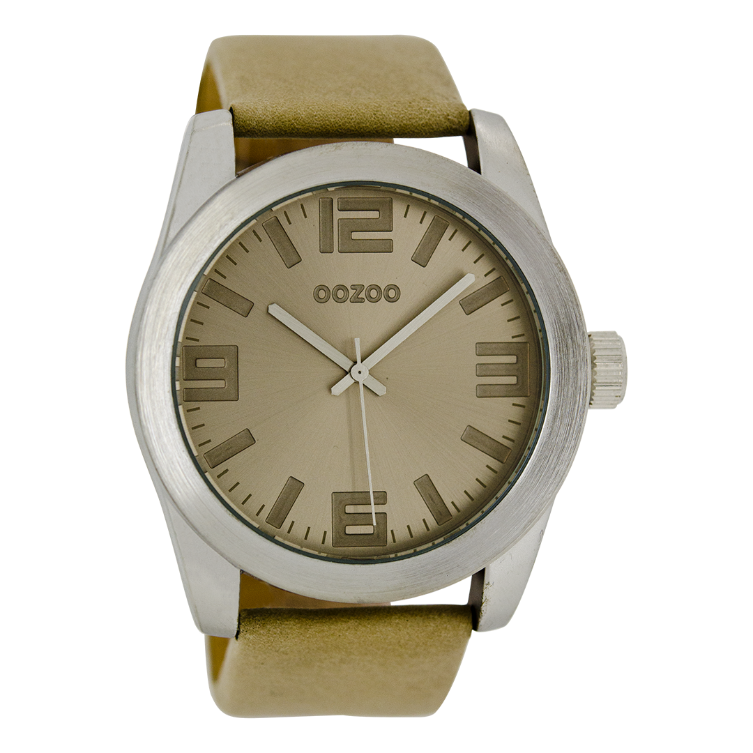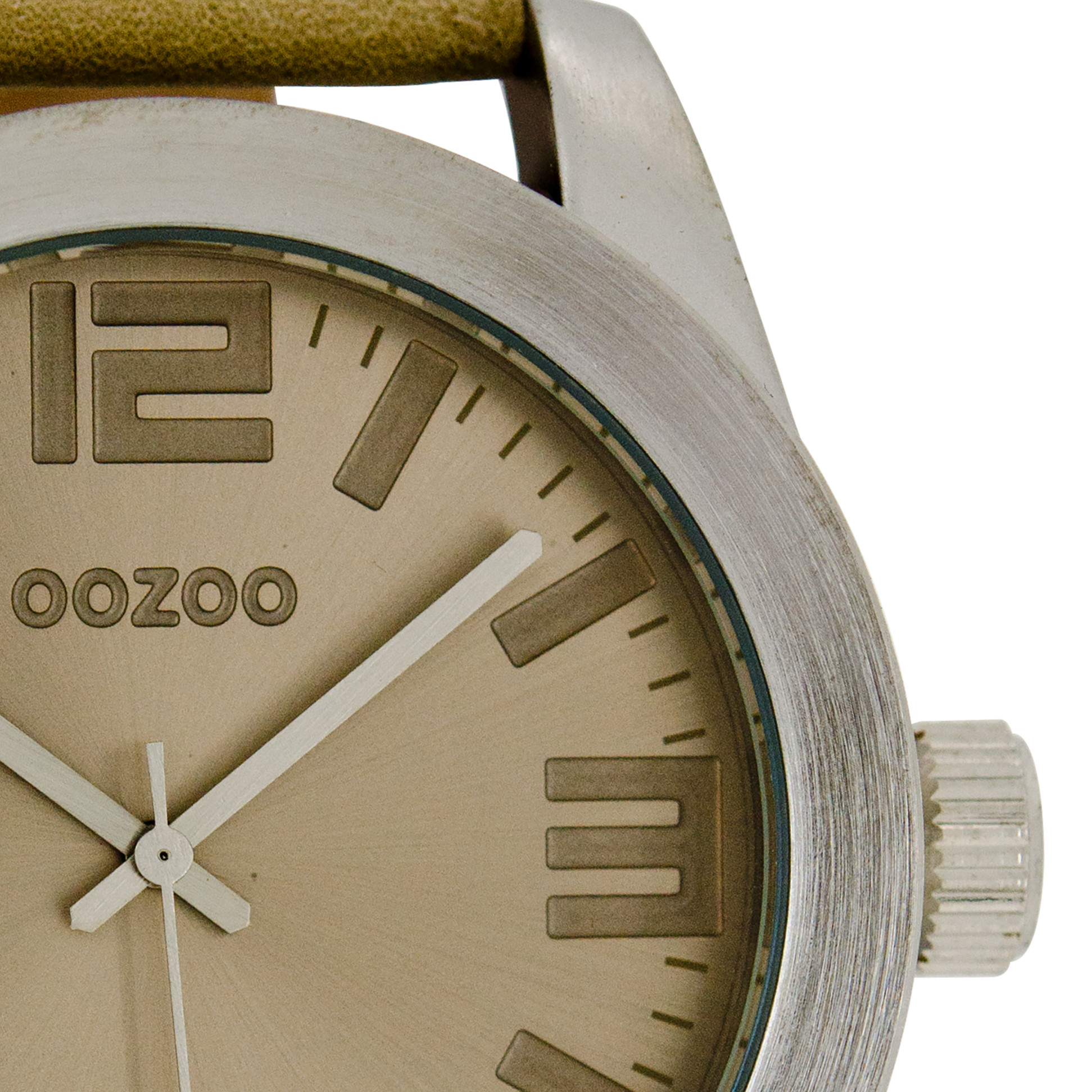 Silver coloured OOZOO watch with sand leather strap - C6106