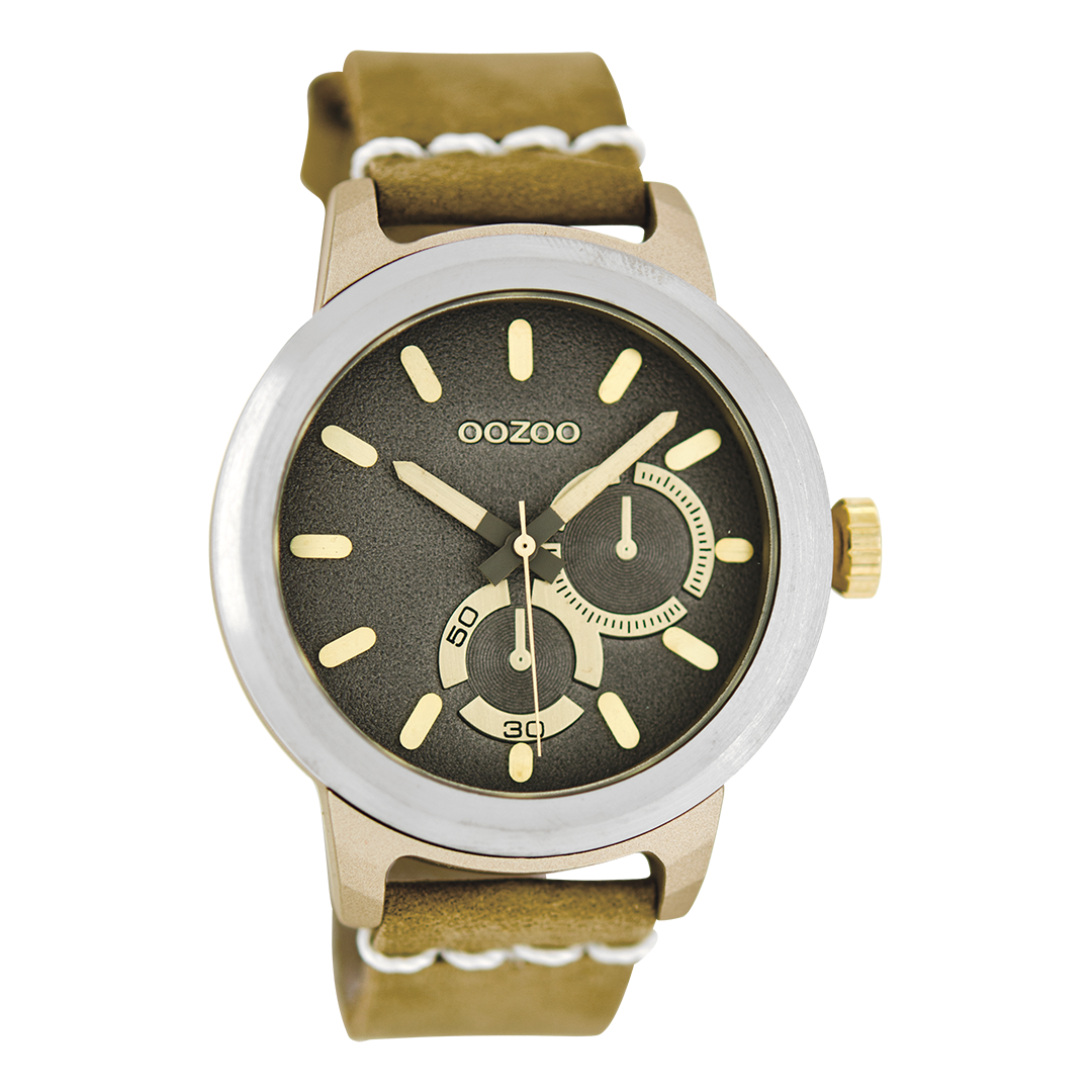 Stand out with this beautiful round unisex design from the trendy OOZOO Timepieces collection. The C6205 has a stitched sand leather strap and 40 mm silver coloured metal watch case. You are making quite the fashion statement with this sand chrono dial, gold coloured stripes digits and matching hands. This essential watch for your wardrobe has a mineral glass, stainless steel backplate and is nickel safe. This watch has a 2 Japanese movement and is covered by a 2 year warranty (see section 3 of our Refund, shipping & warranty policy).