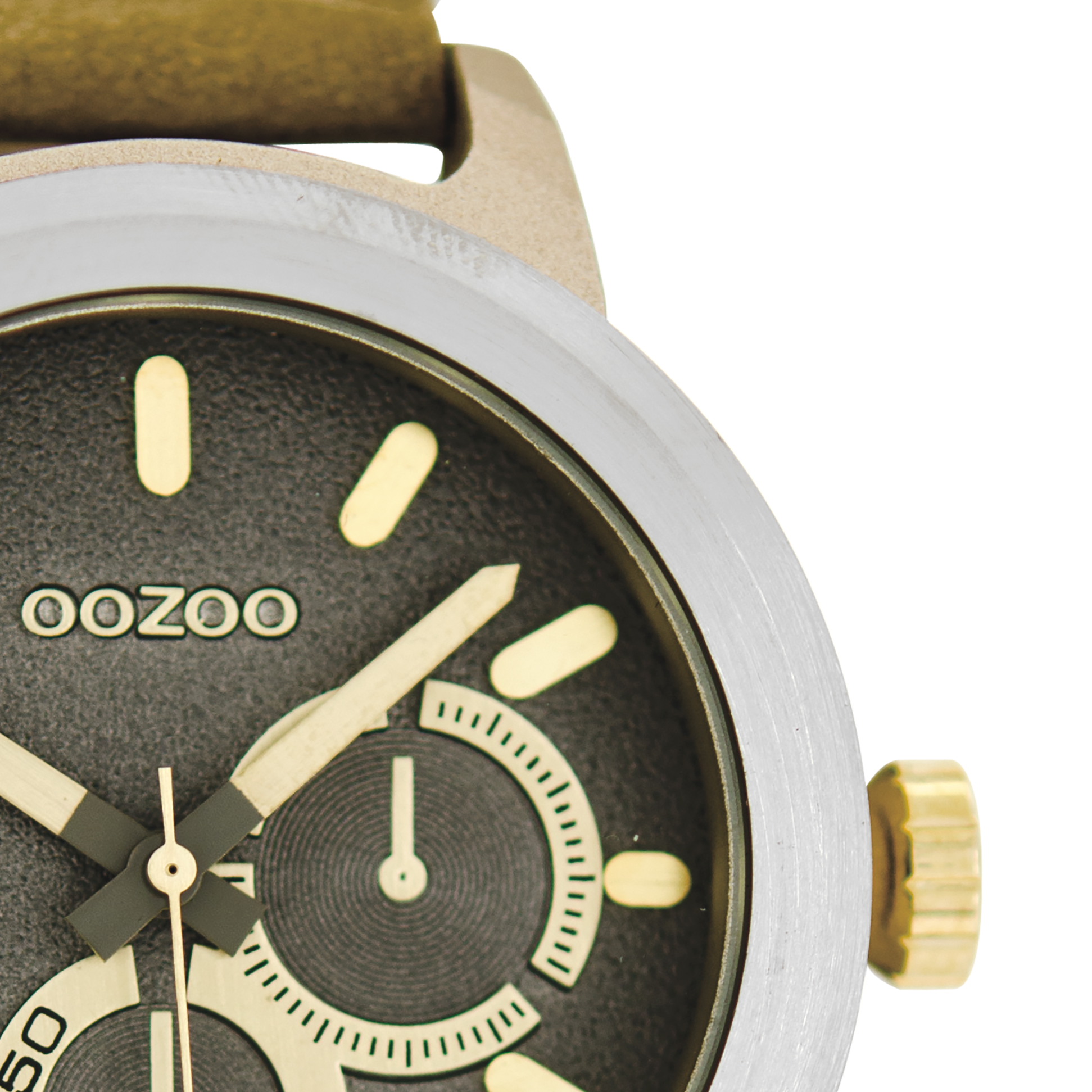 Silver coloured OOZOO watch with sand leather strap - C6205
