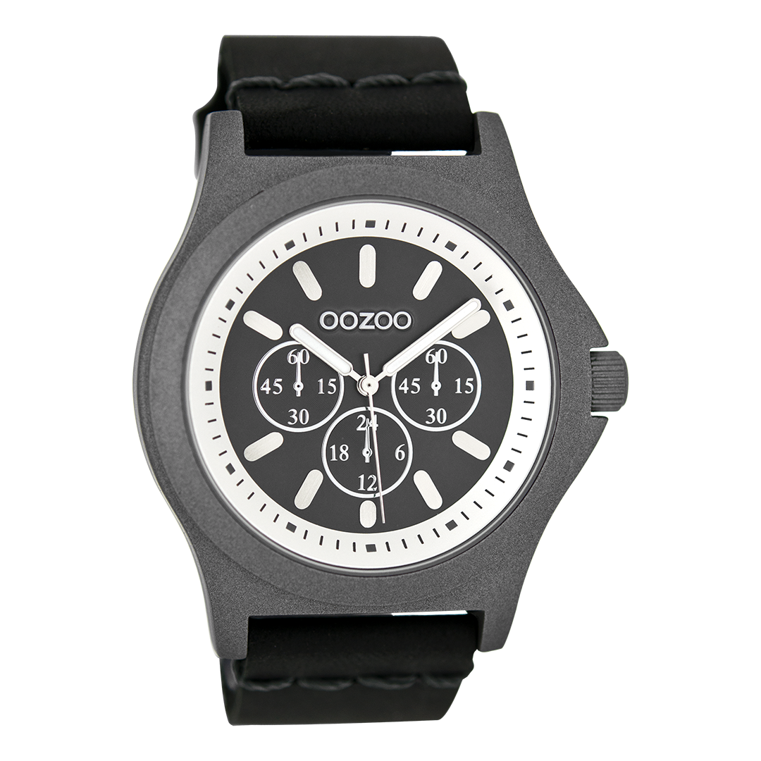 Dark grey OOZOO watch with black leather strap - C6514