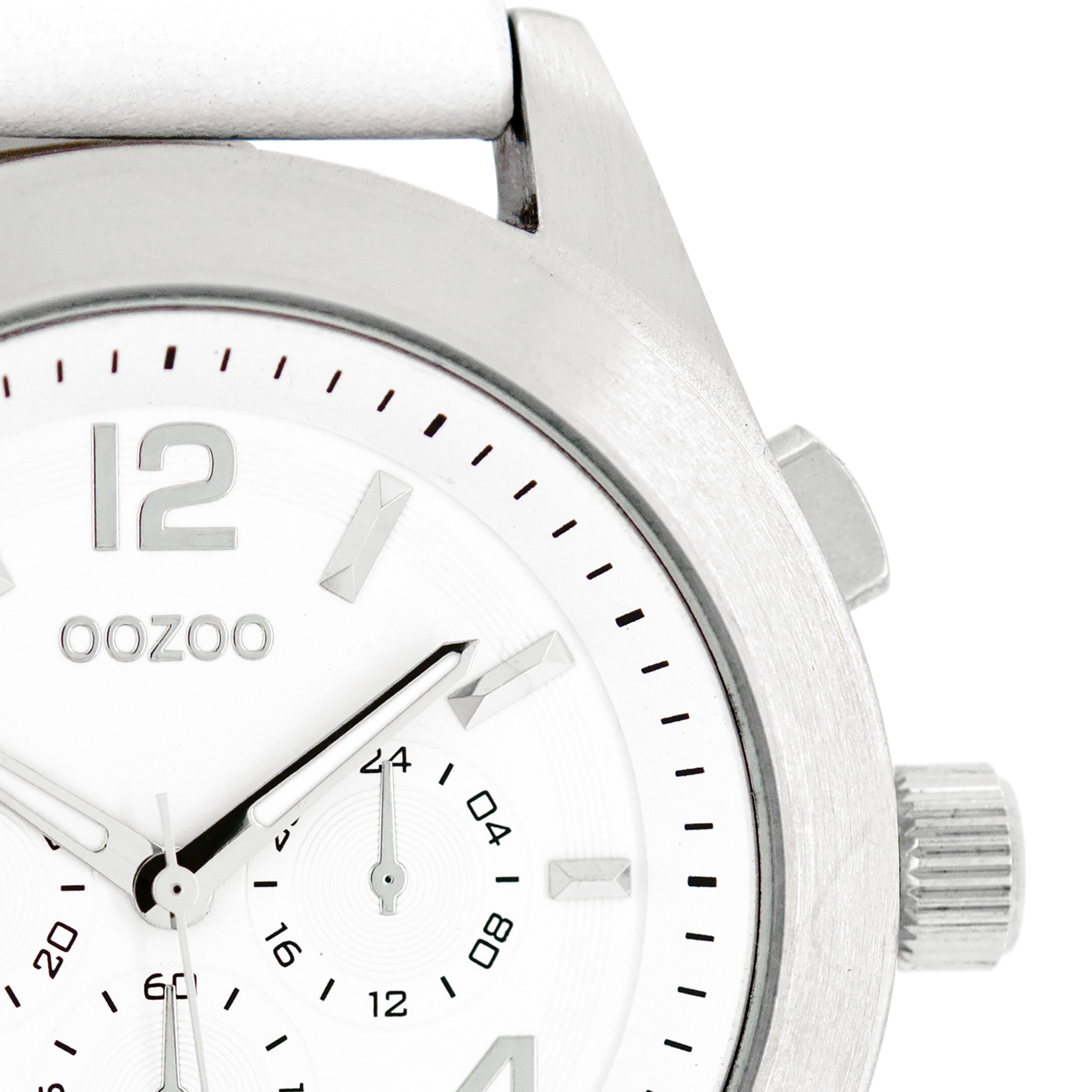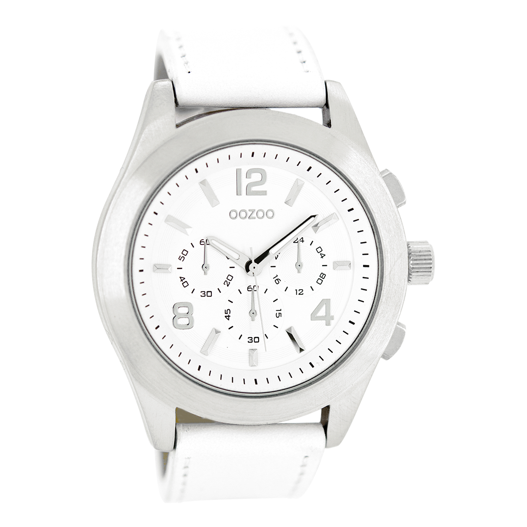 Silver coloured OOZOO watch with white leather strap - C6586