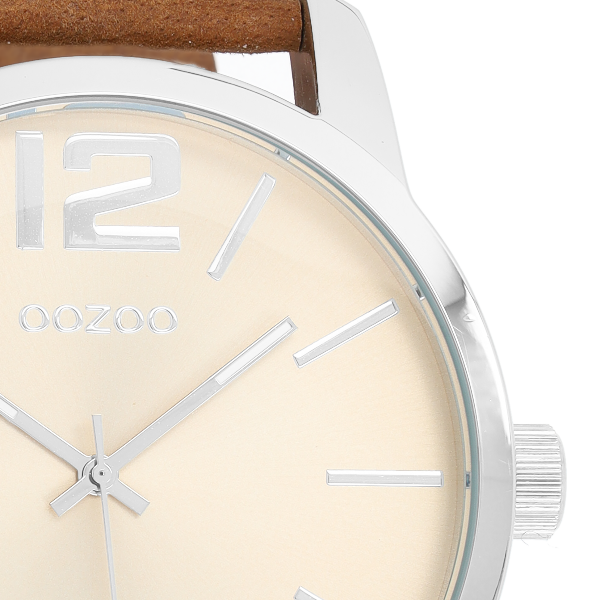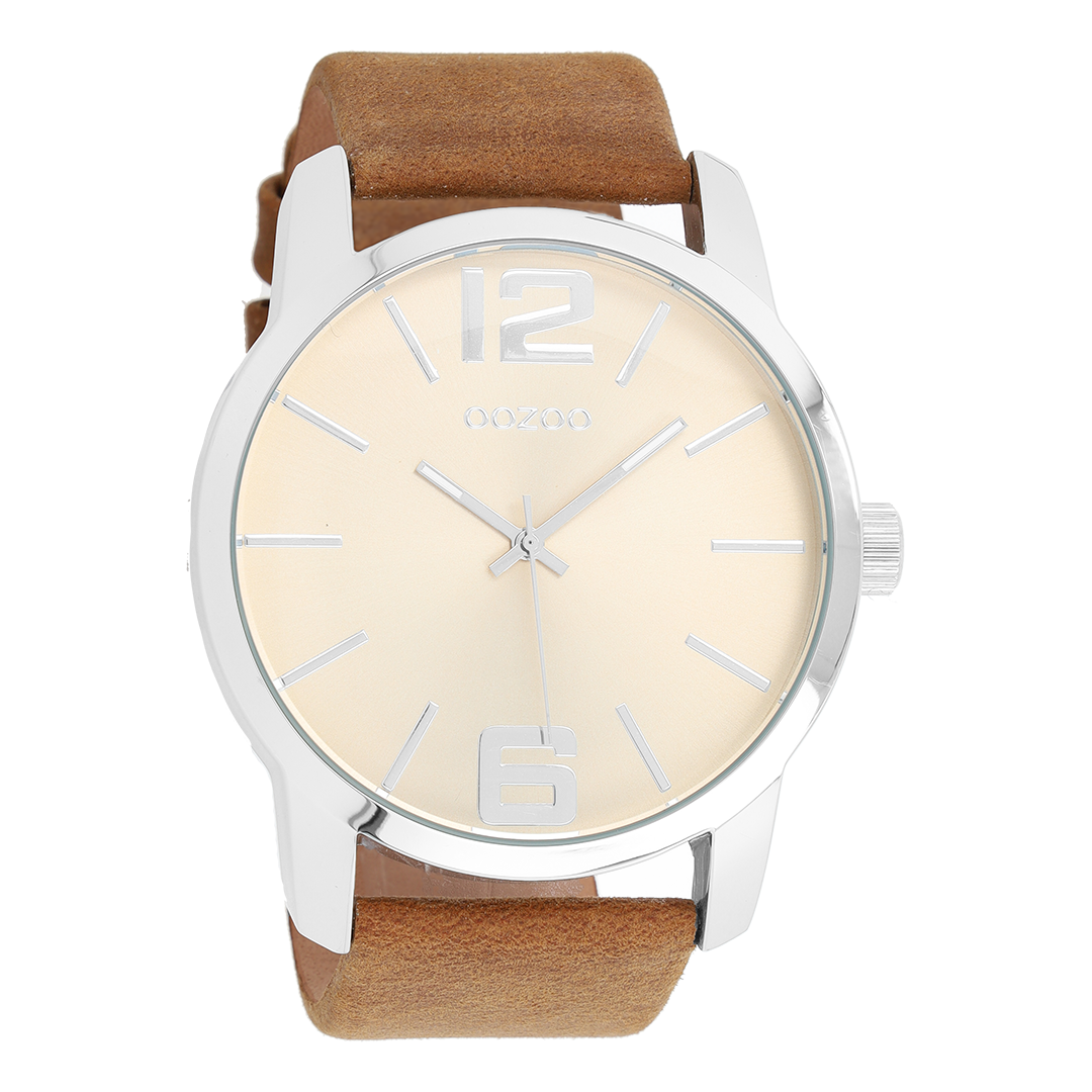 Silver coloured OOZOO watch with brown leather strap - C6701
