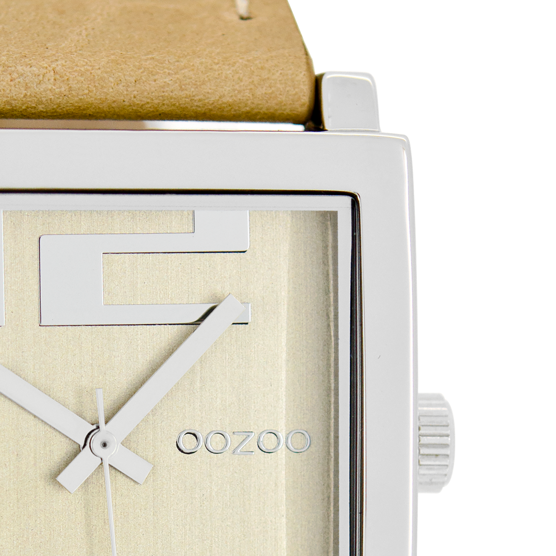 Silver coloured OOZOO watch with sand leather strap - C6815