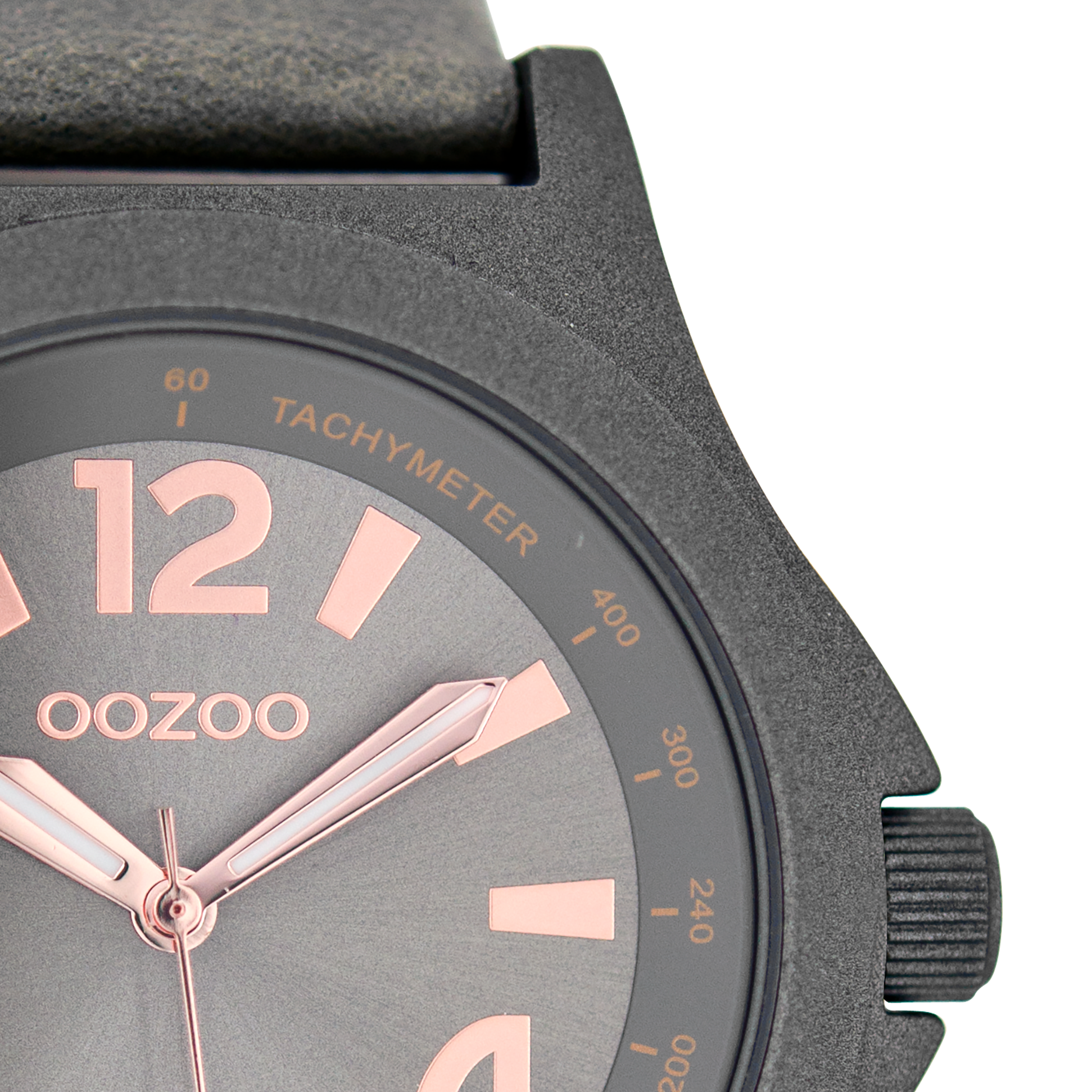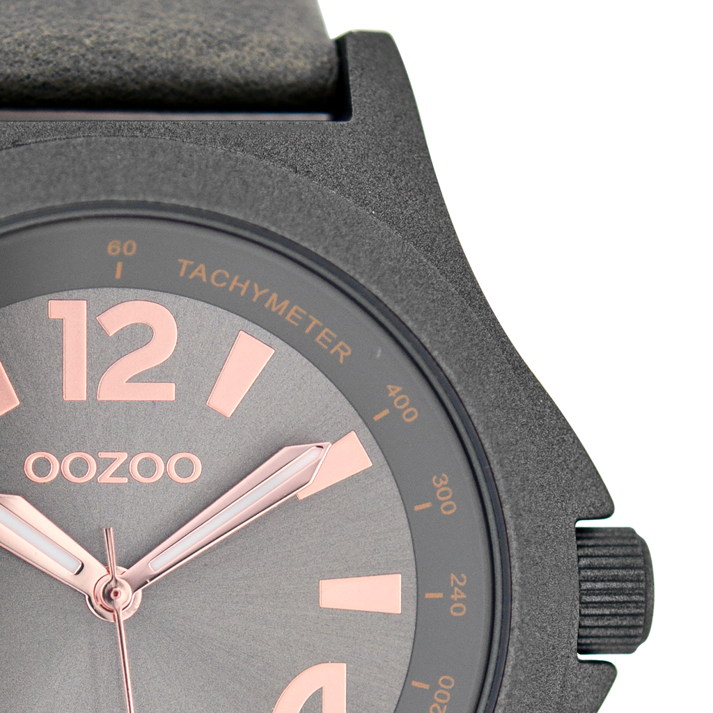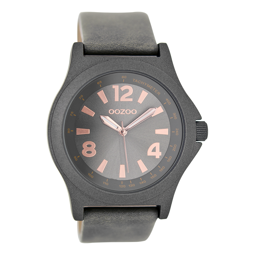 Stand out with this beautiful round ladies design from the trendy OOZOO Timepieces collection. The C6877 has a grey leather strap and 43 mm grey matte watch case. You are making quite the fashion statement with this grey sunray dial, rose gold coloured stripes and numbers digits and matching hands. This essential watch for your wardrobe has a mineral glass, stainless steel backplate and is nickel safe. This watch has a 2 Japanese movement and is covered by a 2 year warranty (see section 3 of our Refund, shipping & warranty policy).